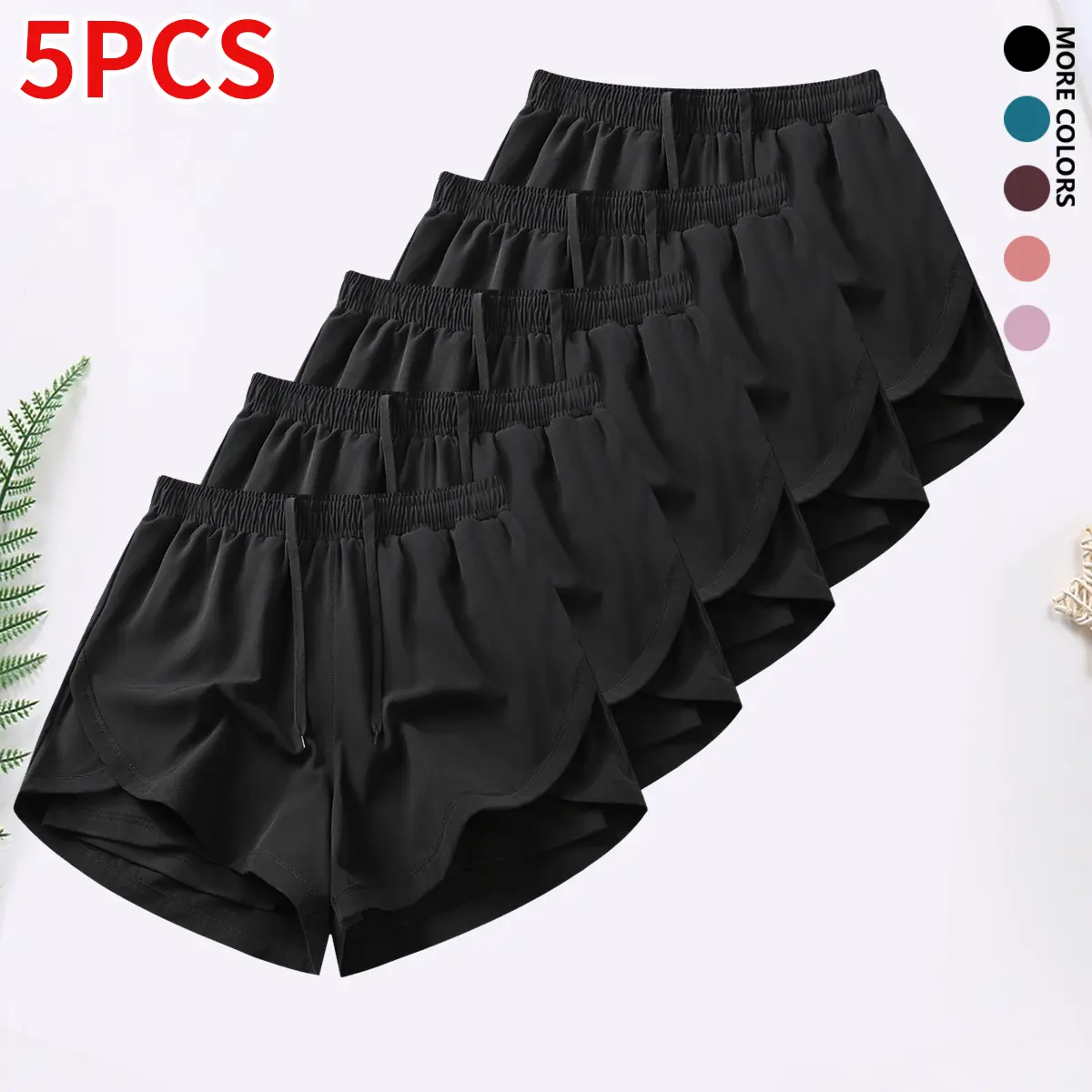 5-piece set, women’s shorts set with built-in lining, drawstring, elastic waistband — suitable for running, fitness, and outdoor activities; running gear | casual sportswear; women’s shorts, summer bottoms