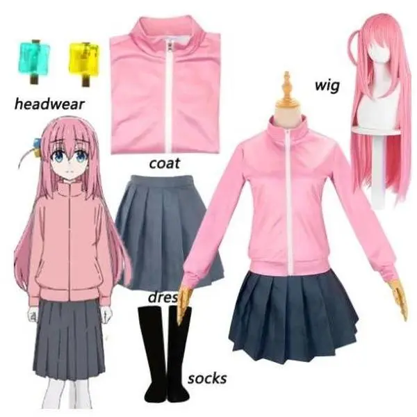 Anime Bocchi The Rock Gotou Hitori Cosplay Costume Gotou Hitori Dress Pink Wig Uniform Jacket Skirt Girls Jk Halloween Outfit