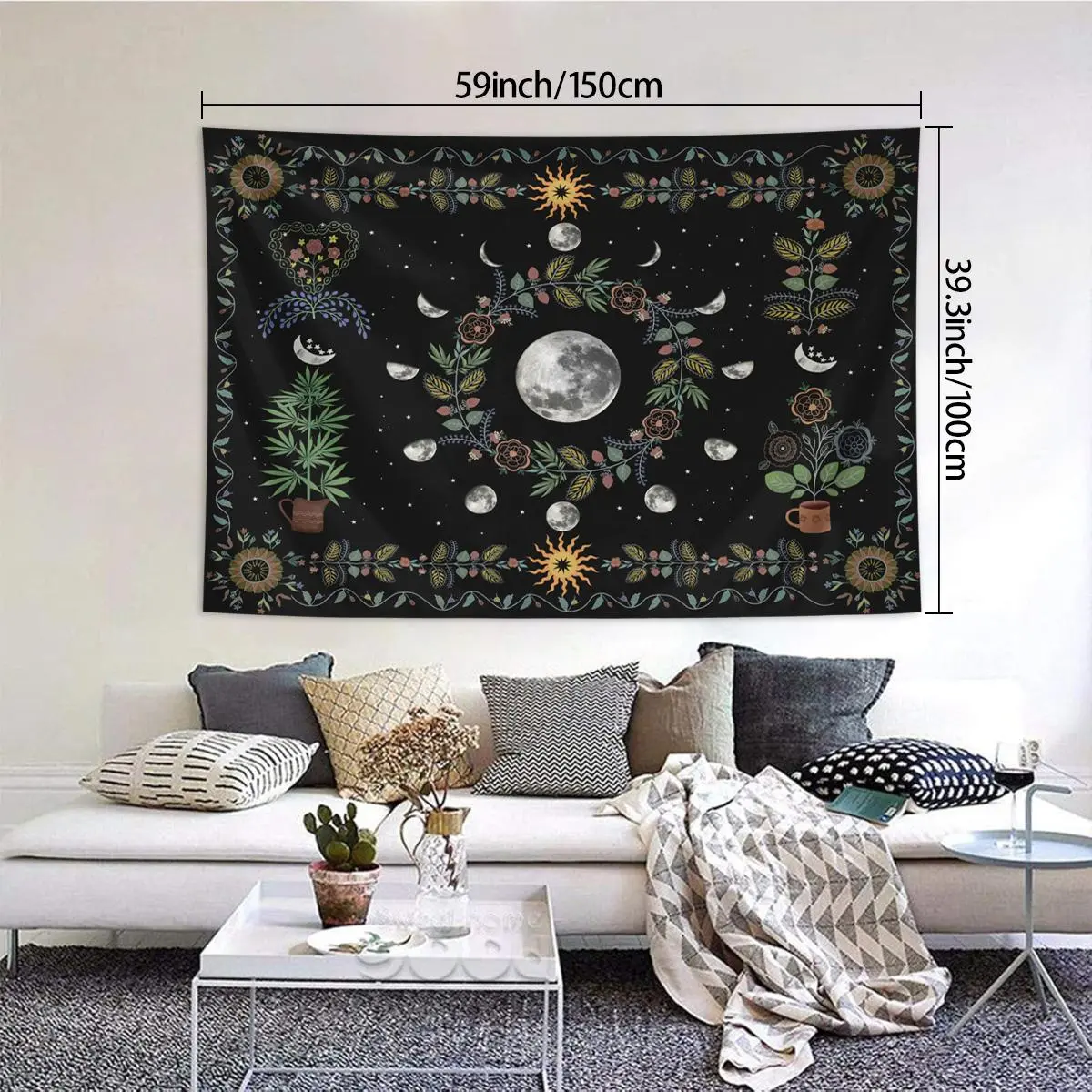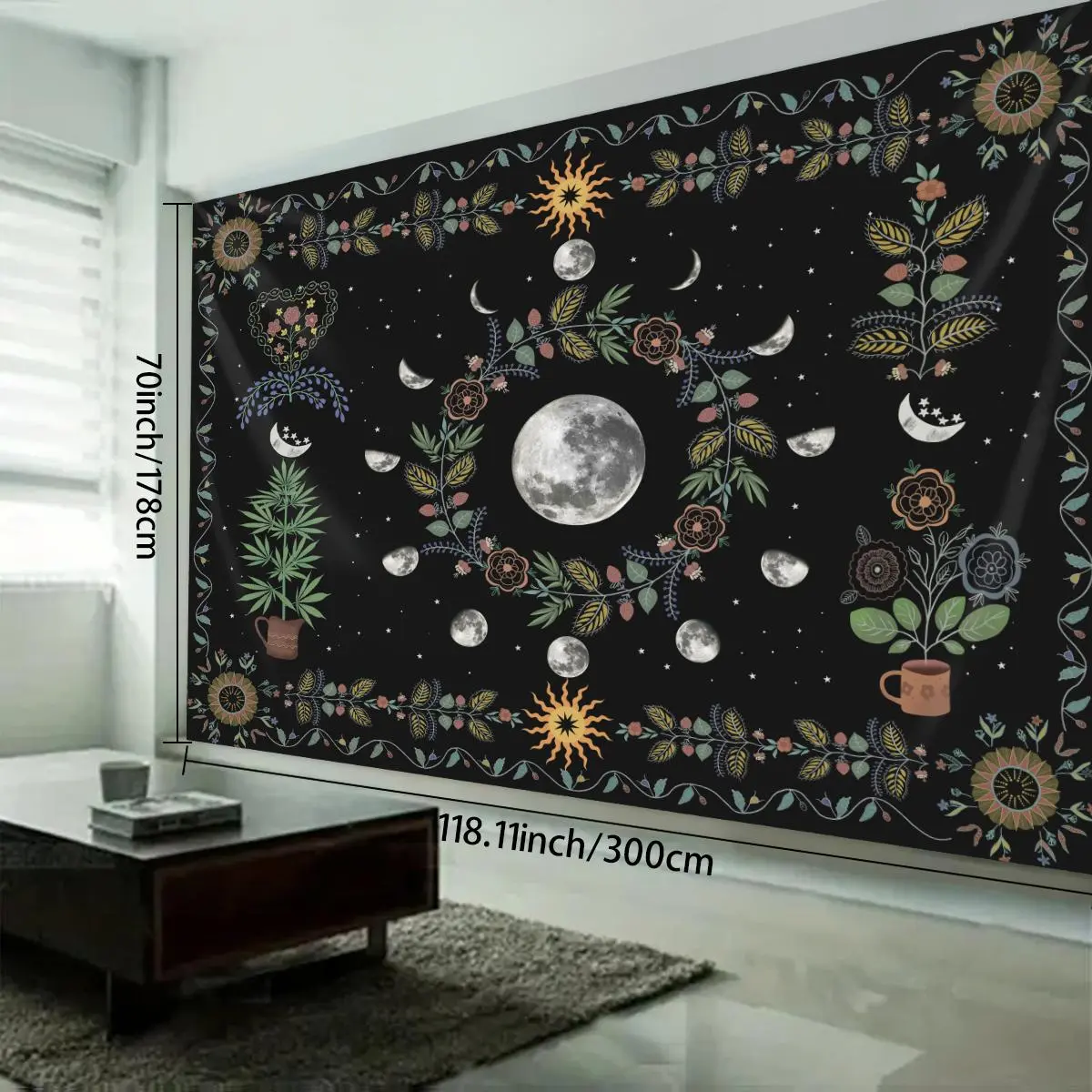 [Unique Patterns]: Featuring a natural moon phase motif intertwined with floral elements, this tapestry stands out in any room setting.