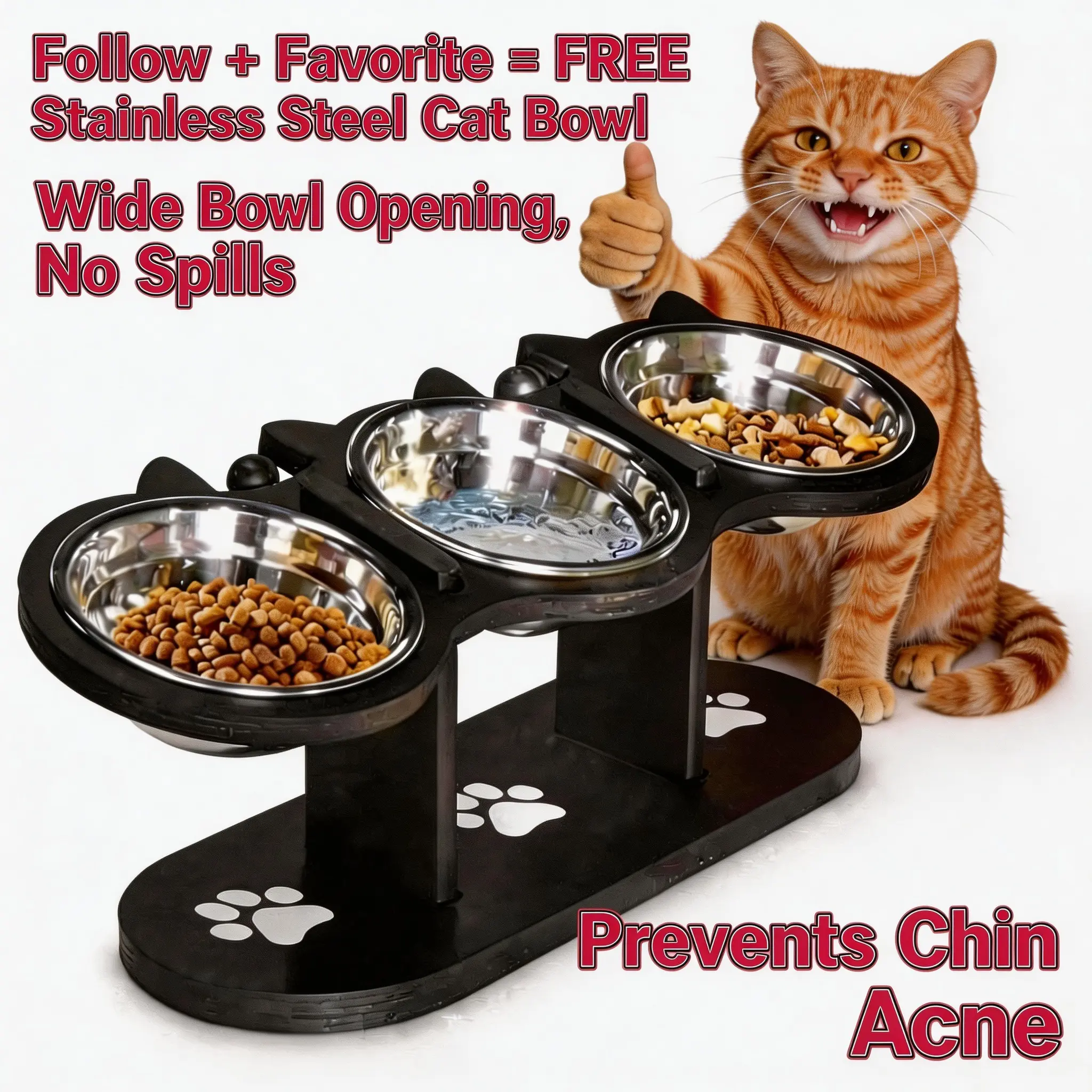 Black 2-Hole Bowl Stand, Follow for 2 Free Bowls
