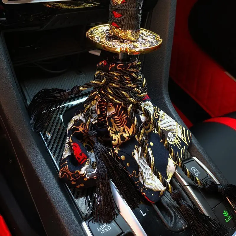 Universal Car Accessories Pattern Style Canvas Katana Shift Lever Knob Dust Cover Racing Samurai Sword Shift Knob Collars