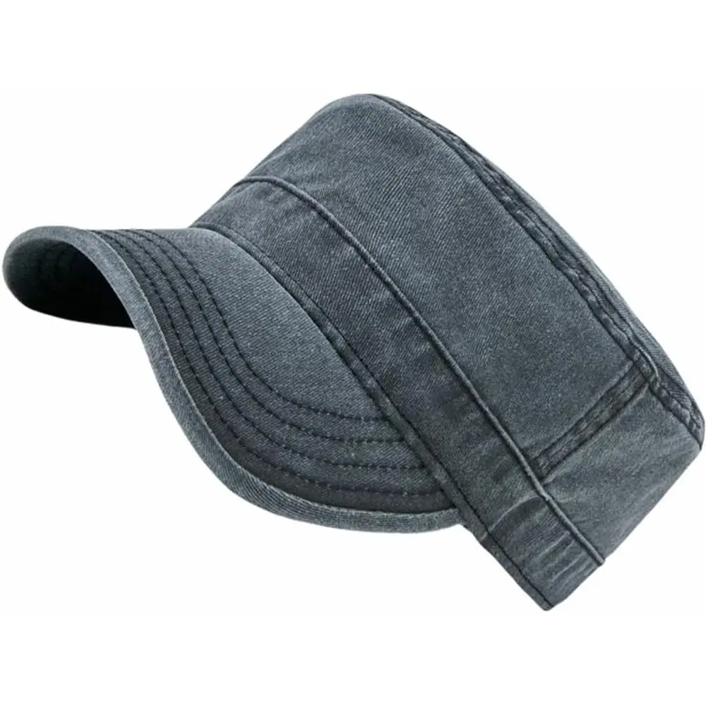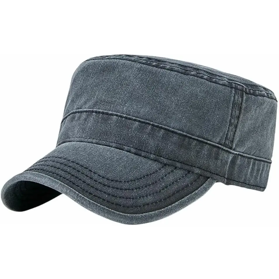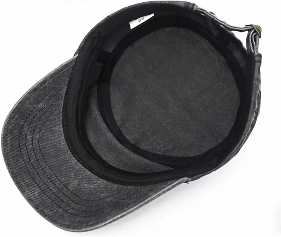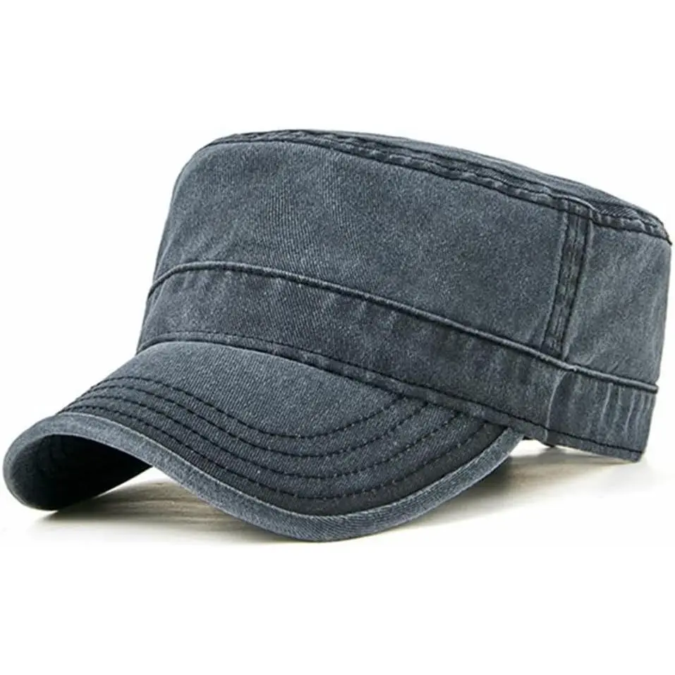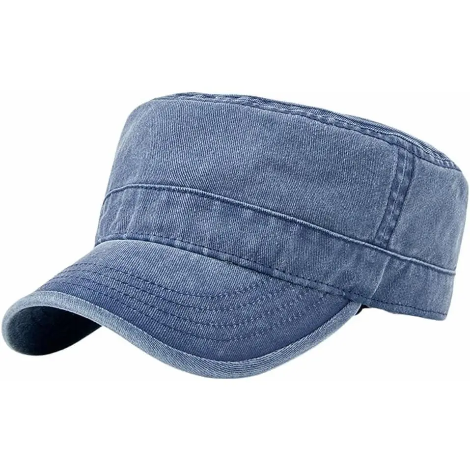 CLASSIC MILITARY STYLE: Vintage washe cotton caet cap featuring a casual army-inspire flat top esign perfect for everyay wear