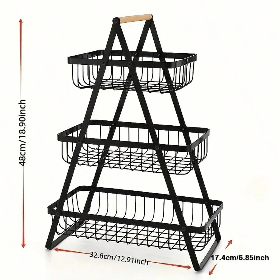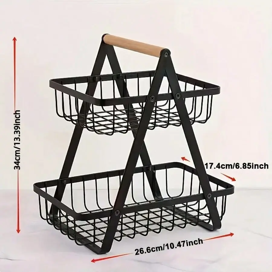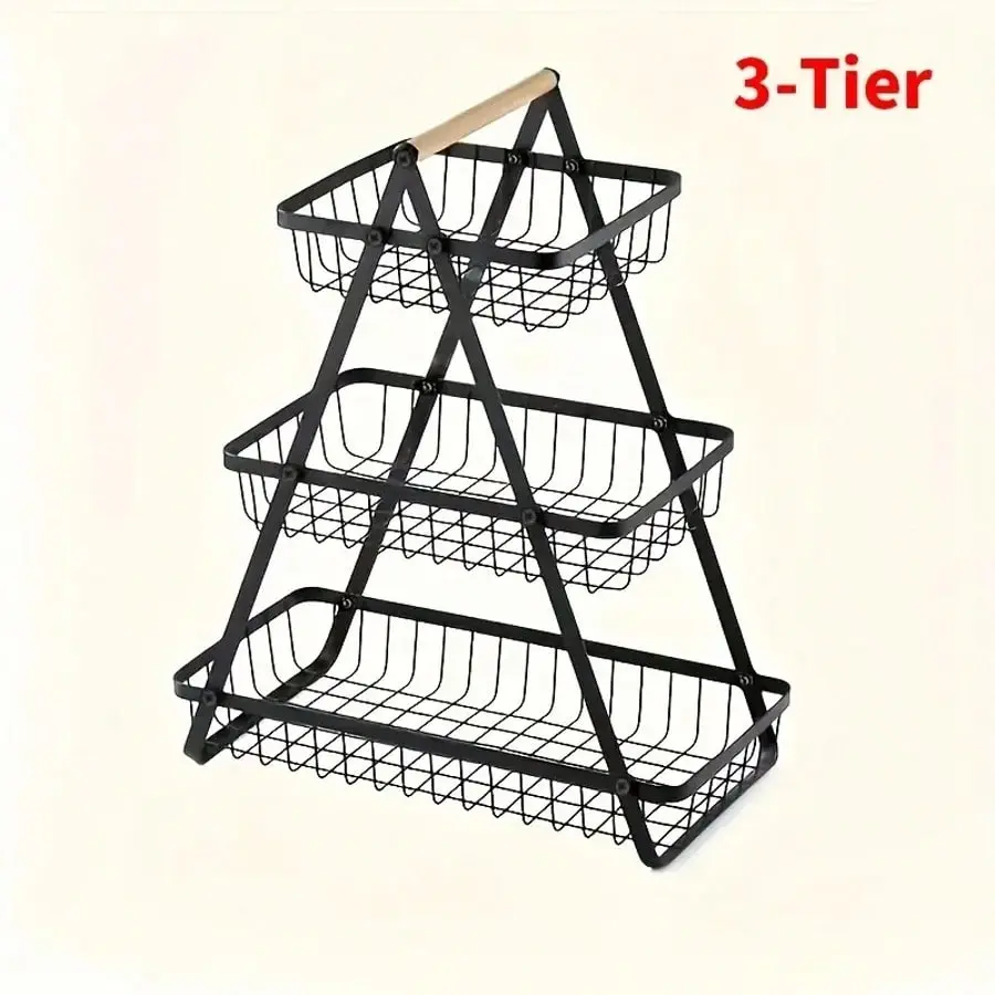 TAIMASI 2/3-Tier Metal Fruit Basket With Wooden Handles - Multi-Purpose Organizer For Kitchen & Bathroom | Stores Fruits, Vegetables, Bread & Pasta | Detachable Portable Design - Seasonal Pick For: • Labor Day Entertaining Prep