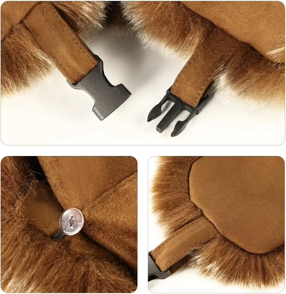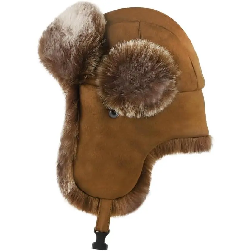 Button esign: Our faux fur warm hat for men is esigne with buttons on the sie, you can put the small earmuffs up an buckle them up, there are esign soun permeable holet the ears, a variety of ways to wear it, so that you can spen a warm winter.Receive if the faux fur messy please use the blowing win can be restore to its original state.A small amount of faux fur off a normal phenomenon