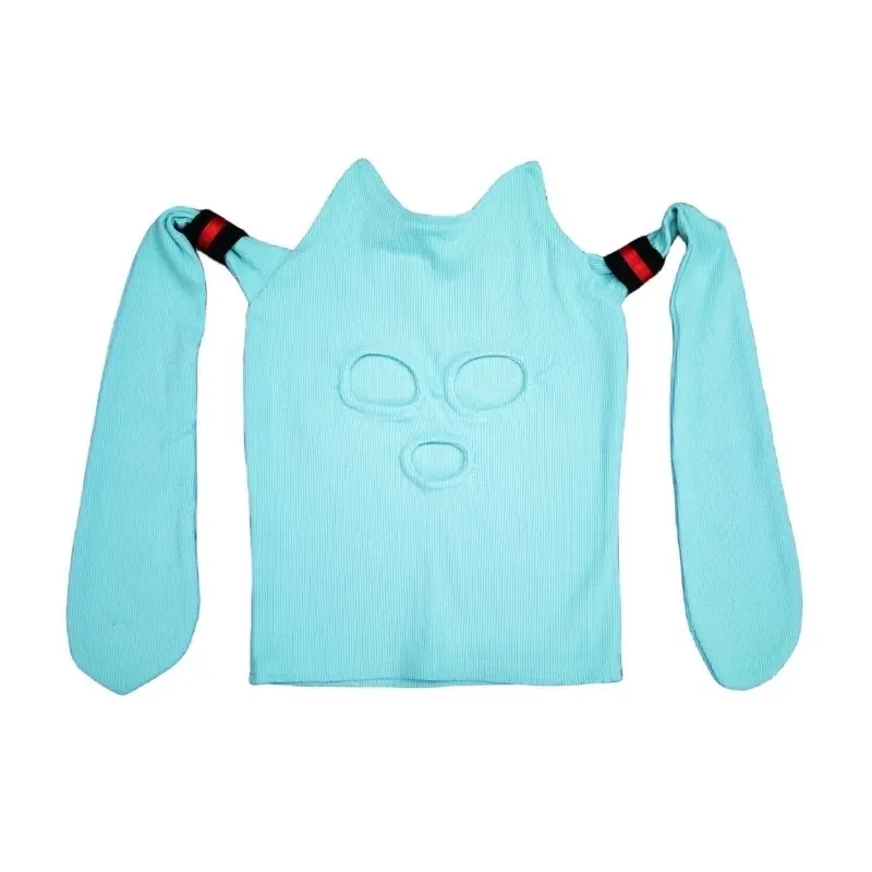 Cartoon Hatsune Miku Kawaii Cat Ear Weaving Mask Headgear Cute Anime Game Cosplay Funny Hat Costume Face Helmet Props Gift