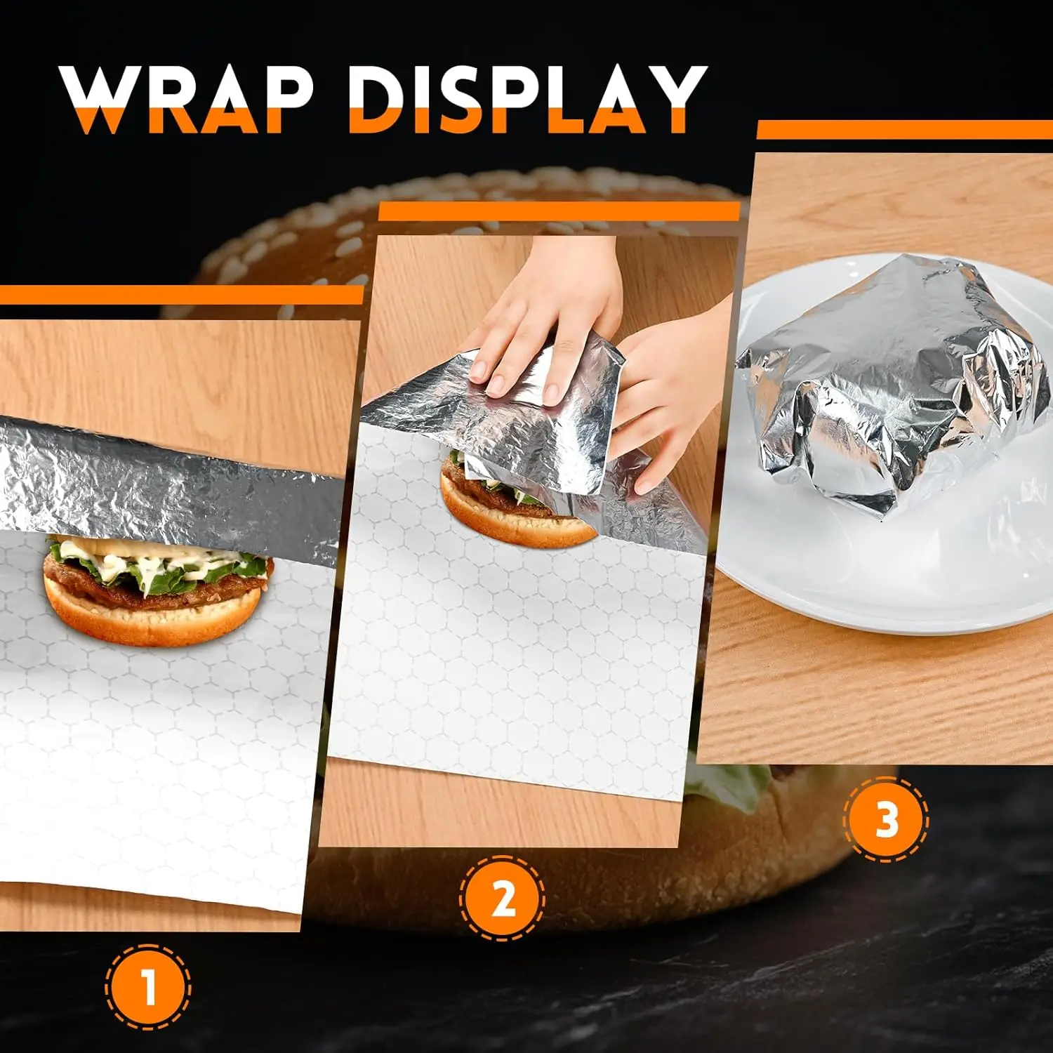 ·Package Includes: Made with premium aluminum foil, these 14”x16" sandwich wrapping paper sheets come pre-cut for quick and easy use, eliminating the hassle of unrolling and cutting.