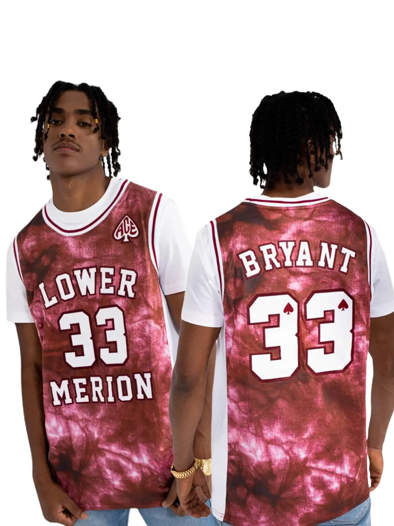Lower Merion High School Kobe Bryant #33 Tie Dye Maroon Basketball Jersey Ace of Spades Logo Retro Breathable Mesh Sleeveless Tank Top for MJ Fans, Basketball Collectors High School Basketball Enthusiasts Legends Supporters