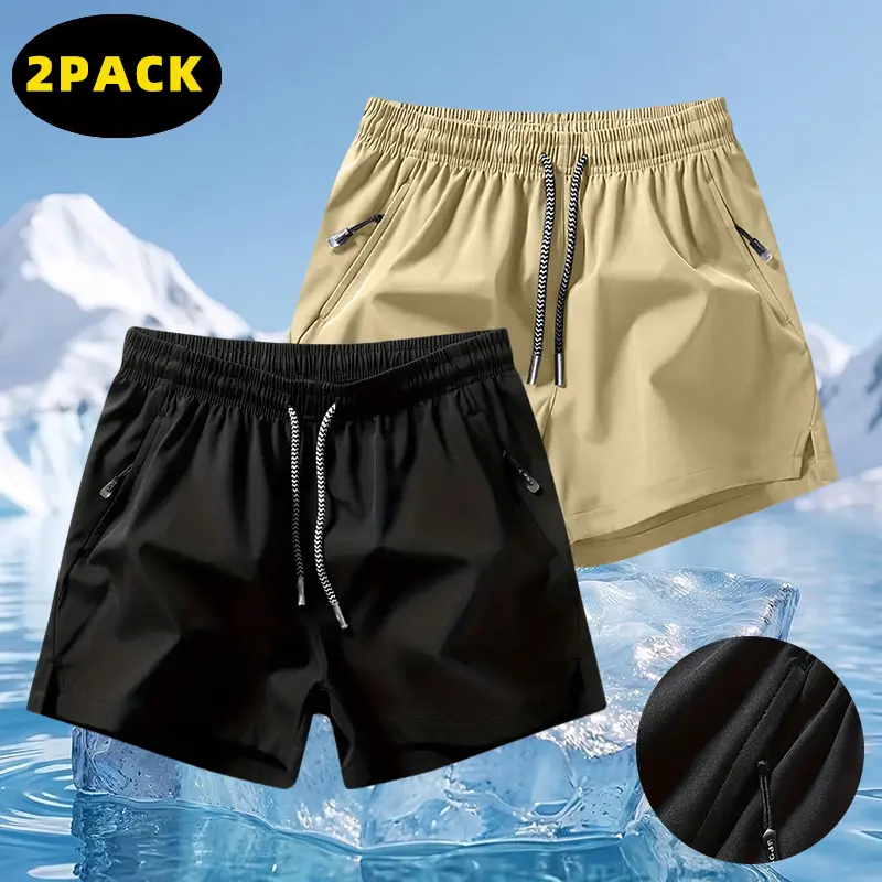 Pack of 2 men’s ice silk casual shorts—breathable, high-waisted athletic shorts that dry quickly for fitness. A summer essential suitable for vacations, running, sports, workouts, everyday wear, outdoor activities. Tropical Operator Pants men's Breathable