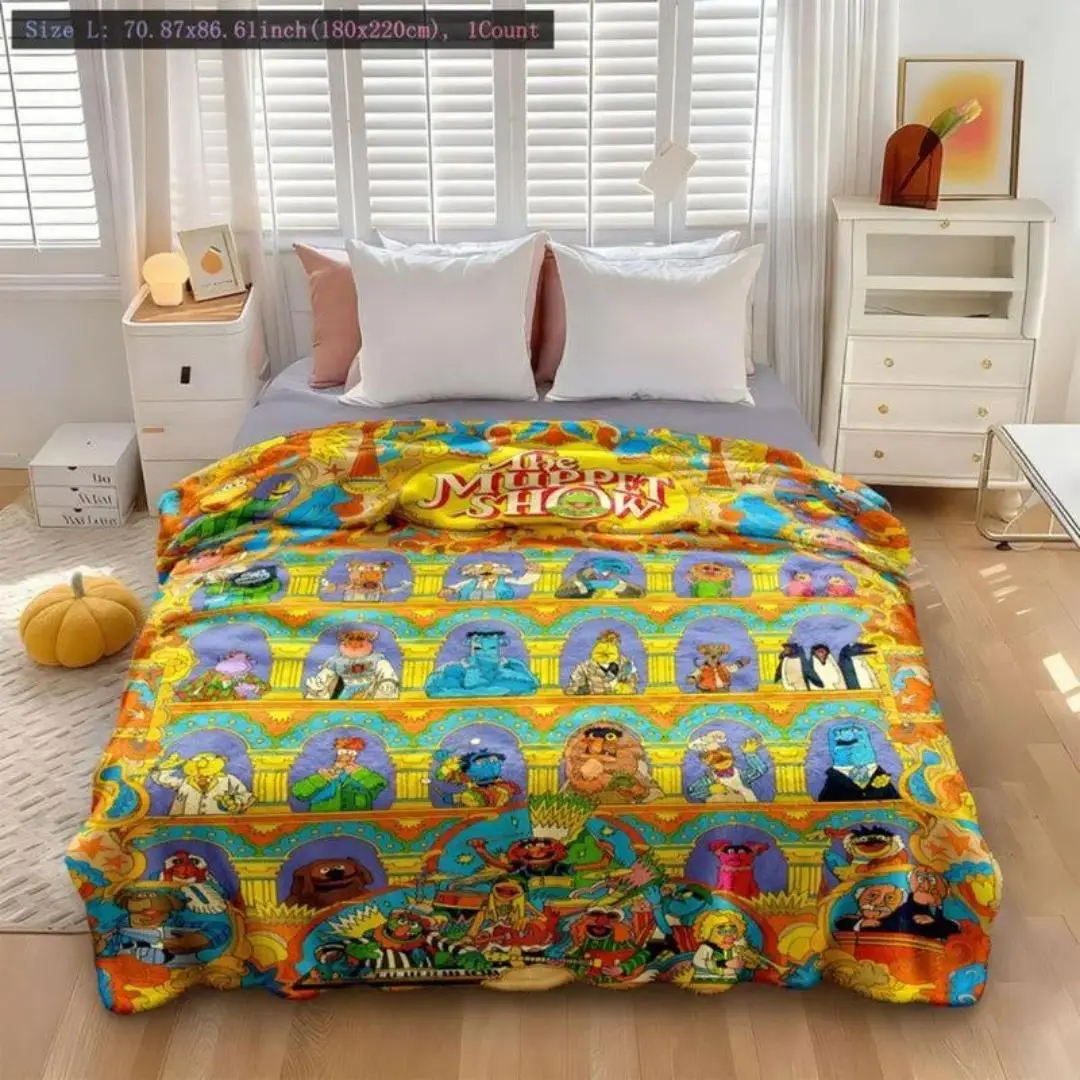 The Muppet Show Flannel Blanket, Colorful Theatre Collage Design with Classic Characters, Soft Cozy Throw Blanket for Bed Sofa Couch Nap Office Travel Camping, Bright Decorative Nostalgic Cartoon Blanket Bedding for Kids & Fans Gift Cartoon Blanket Hallow