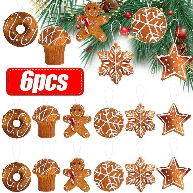 1/6Pcs Christmas Tree Hanging Ornaments Foam Ball Snowflake Gingerbread Man Pendant Christmas Decorations For Home New Year 2025