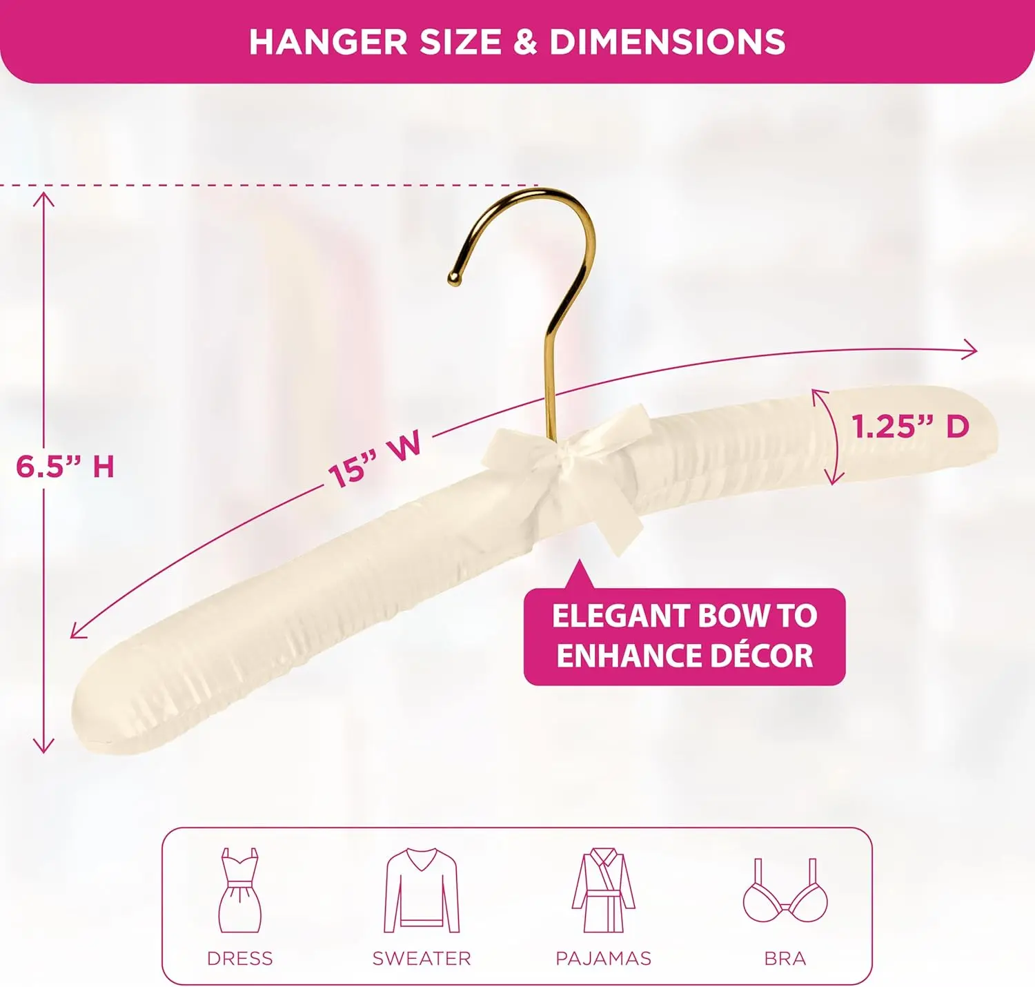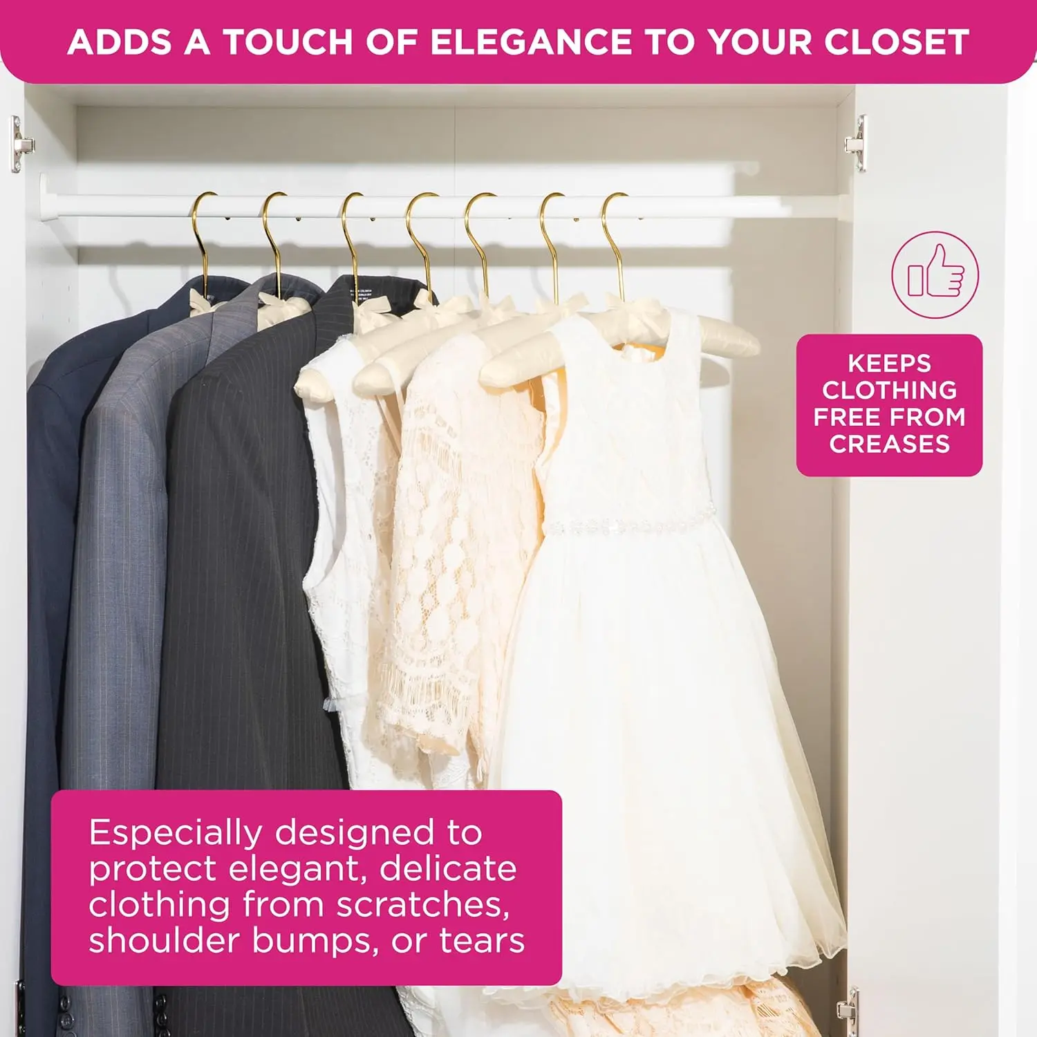 ·PADDED SATIN HANGERS – Our padded hangers are elegant, soft and abundantly padded. The no shoulder bump design won't scratch or tear at the shoulders or edges.