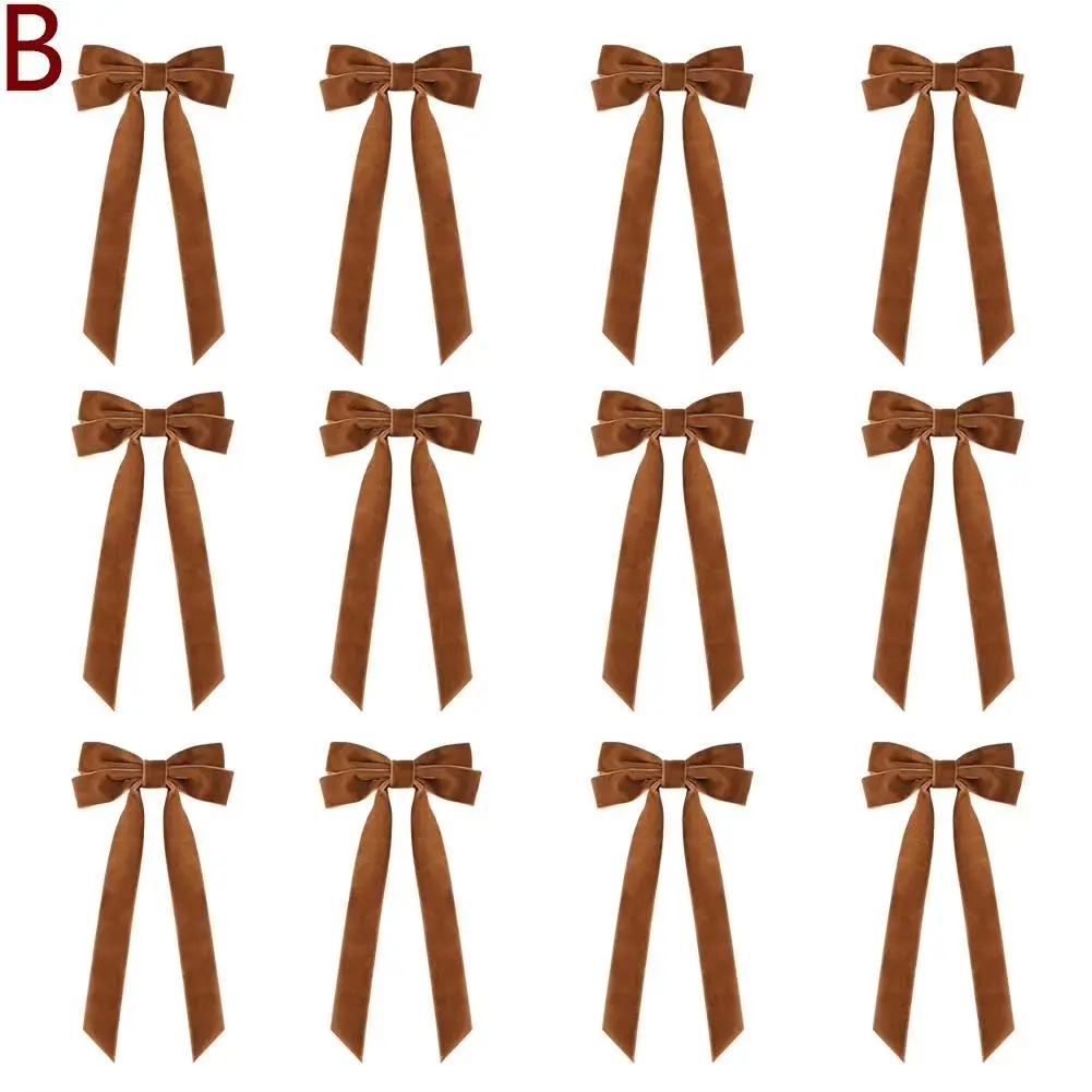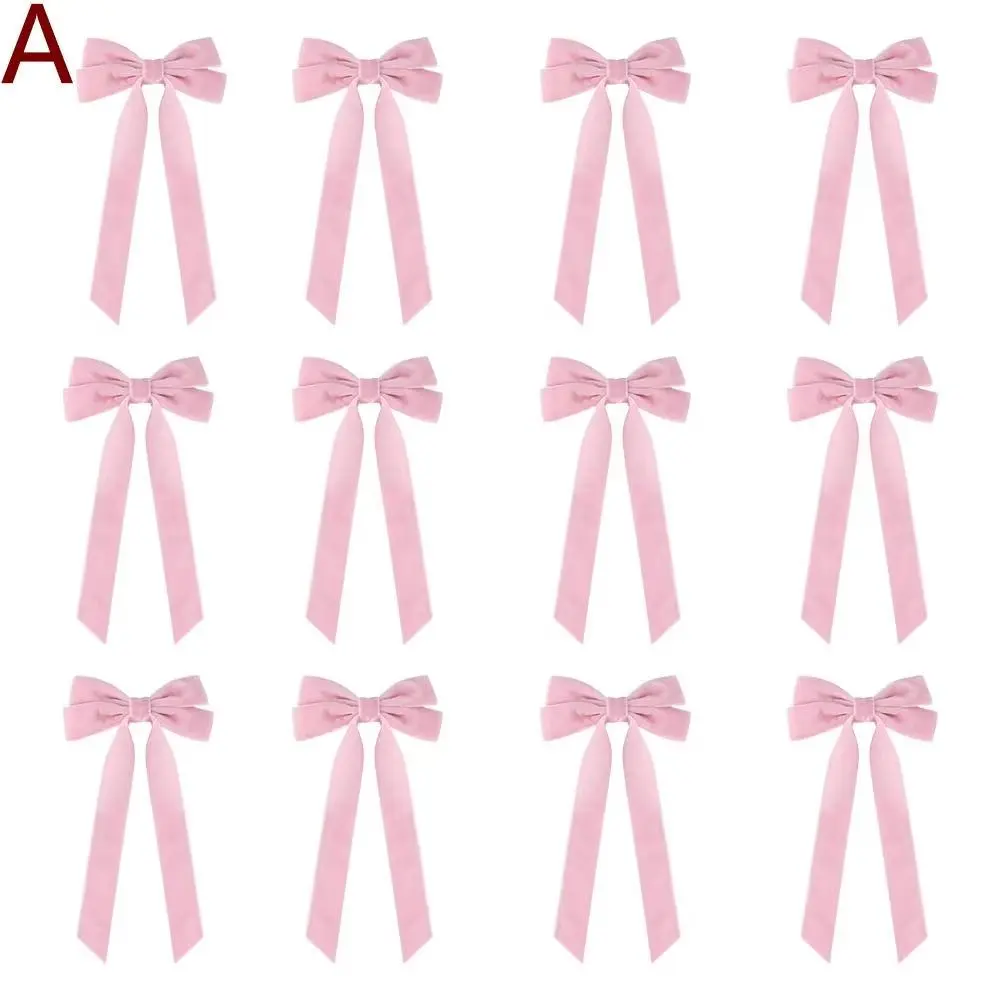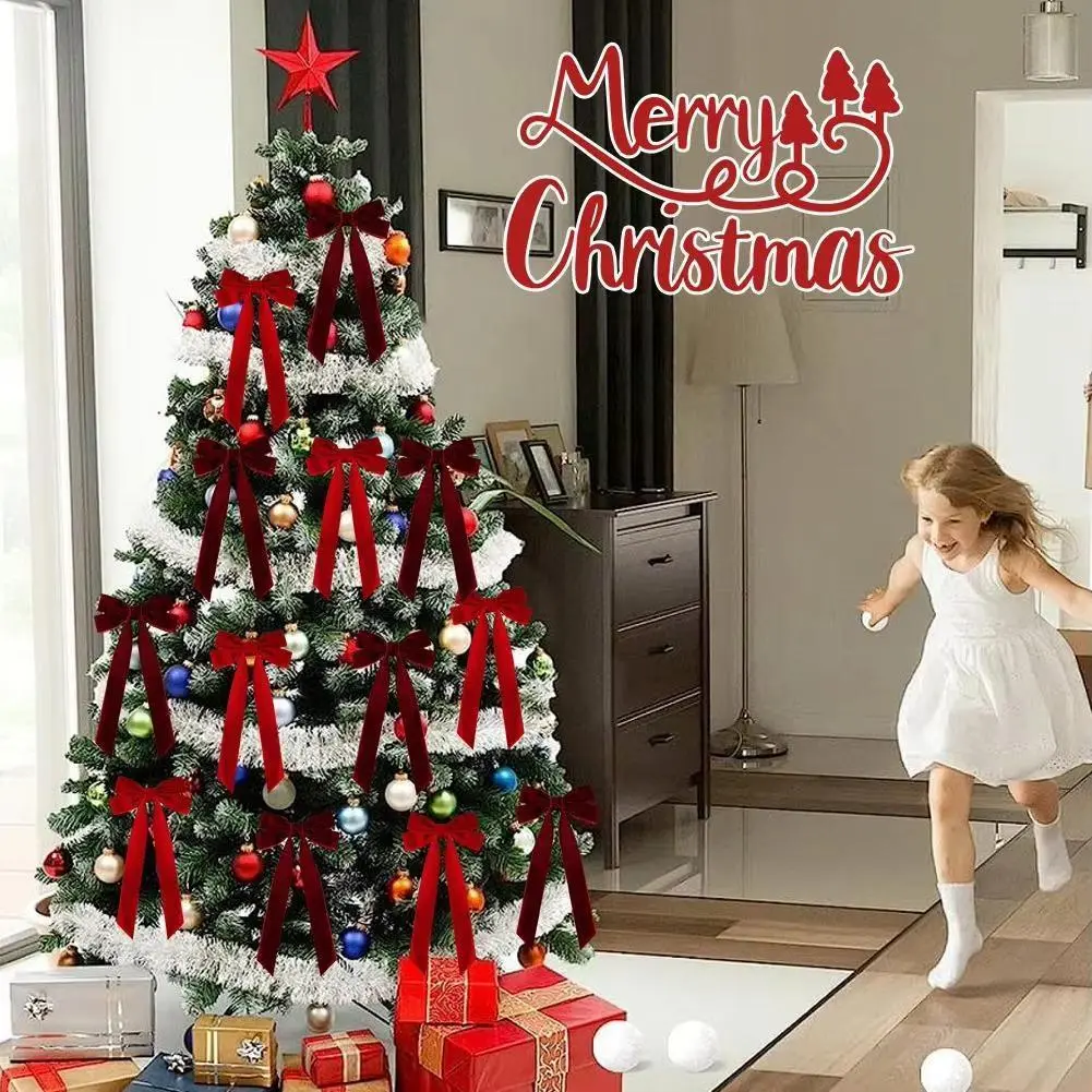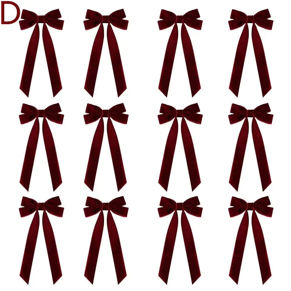 12pcs Velvet Bows Red Christmas Ribbon Bows For Xmas Home Decor Tree Wreaths Gift Wrapping DIY Crafts Festive Winter