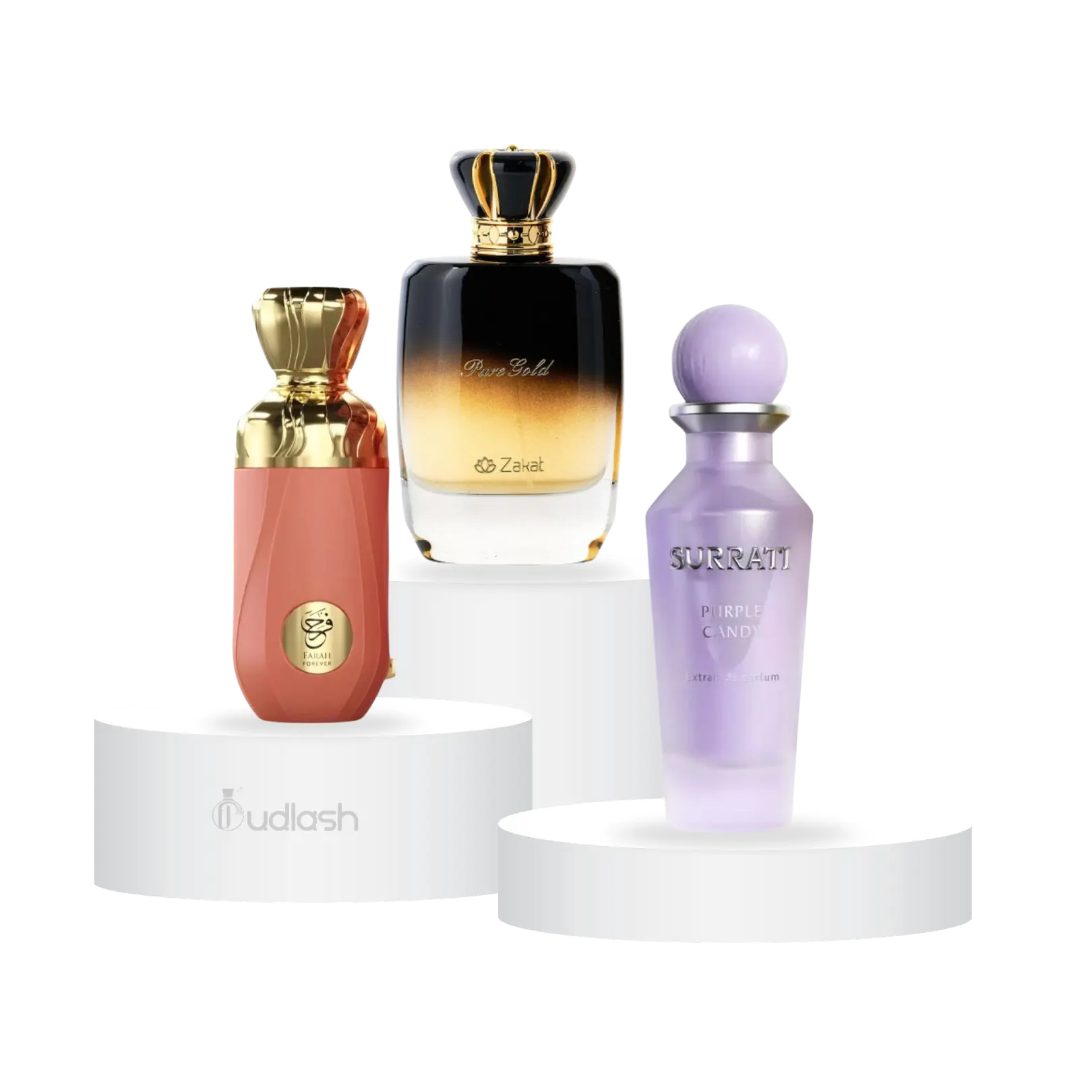 ✨ Habibi Bundle combines three exquisite fragrances: Zakat Farah Forever, Surrati Purple Candy, and Zakat Pure Gold. Perfect for women, this bundle offers a unique olfactory experience. Each fragrance is 100 ML, crafted as an Eau - Extrait De Parfum. The notes of Bergamot, Lemon, and Tea create a refreshing aroma. Ideal for those who appreciate fine fragrances.