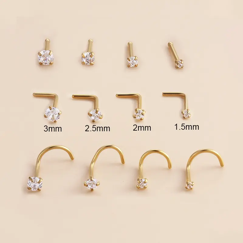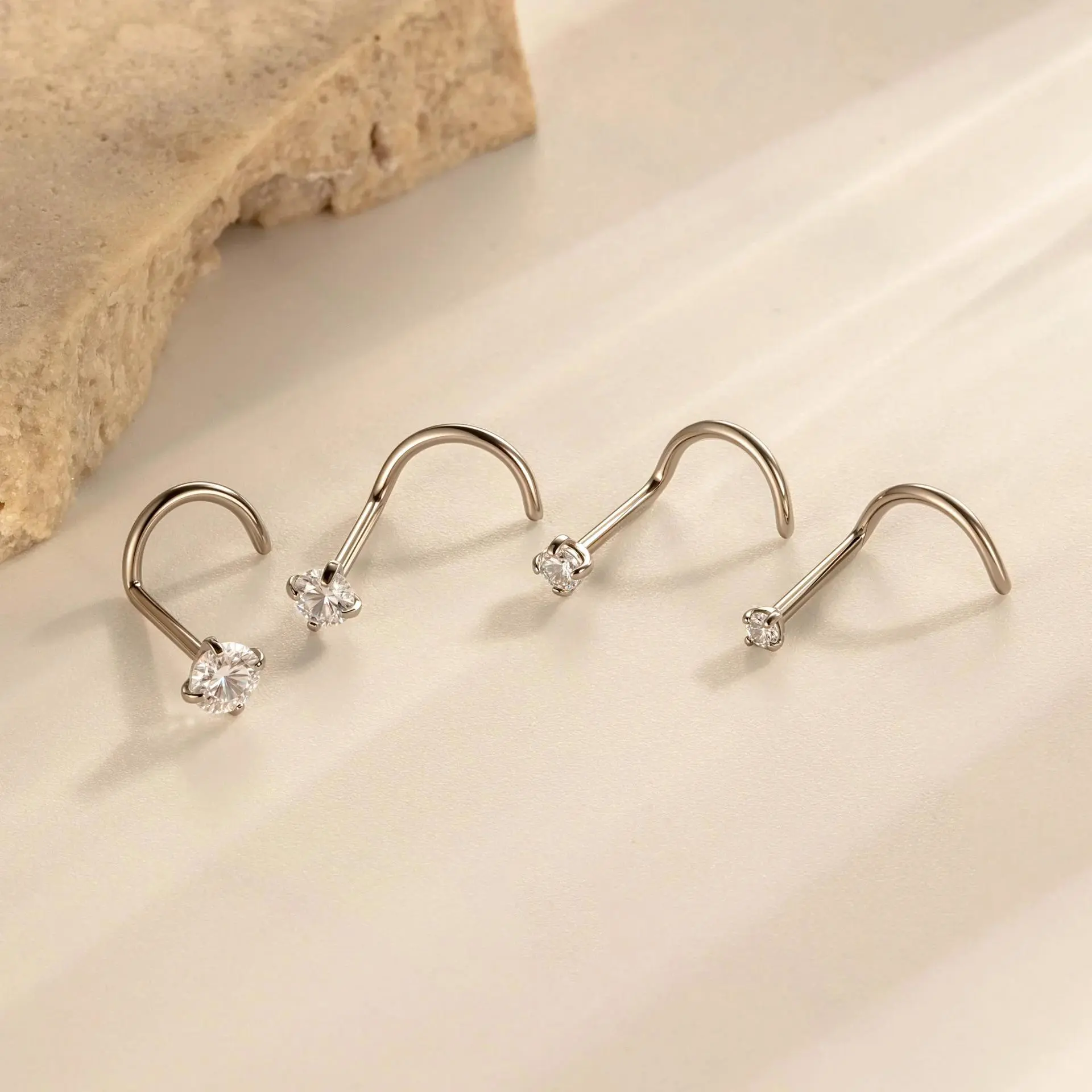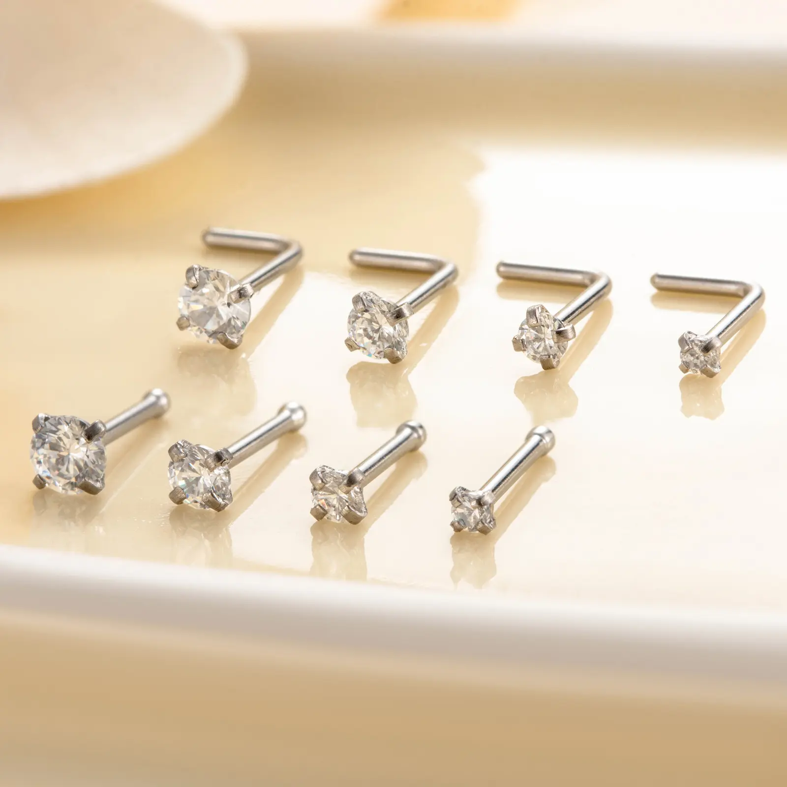 5. 16Pcs 20G 316L Stainless Steel 4-Prong CZ Nose Ring Set, Straight/L/Screw Nose Studs, Hypoallergenic Nose Piercing Jewelry for Women Men