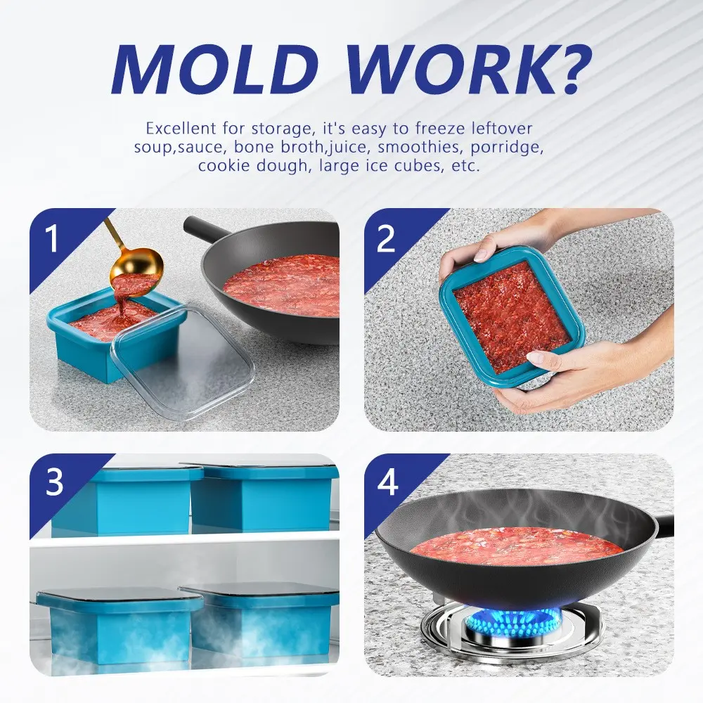 Lidded Silicone Freezer Tray, 17 oz (500 ml), BPA-Free Food Grade Material, Easy Release and Durable Design, 1/2 Pack, Reusable Food Storage Container, Easy Release Leak-Proof High-Temperature Soup and Dish Storage Box, Microwave and Dishwasher Safe