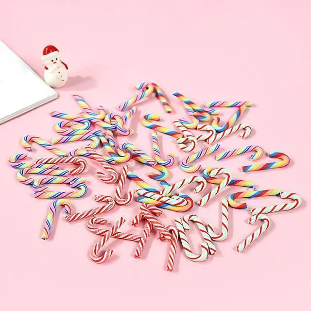 5. 10/30/50Pcs Mini Candy Cane Christmas Decoration Red White Resin Candy DIY Crafts Xmas Pendant Navidad Home Decor 2025 New Year