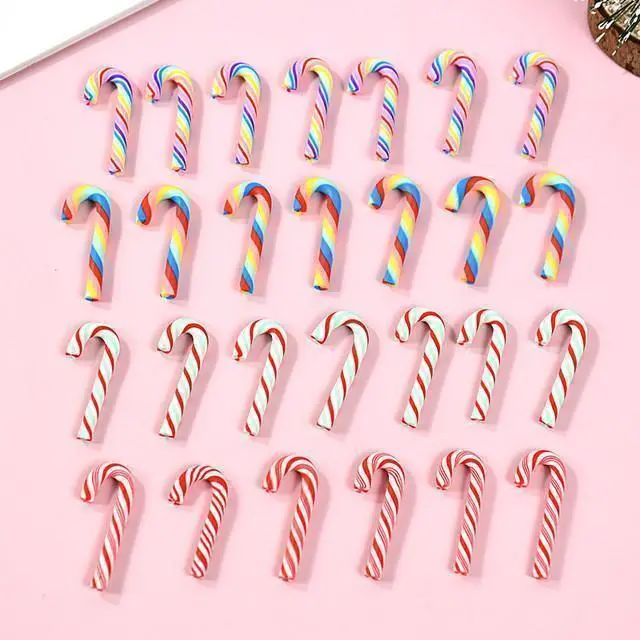 10/30/50Pcs Mini Candy Cane Christmas Decoration Red White Resin Candy DIY Crafts Xmas Pendant Navidad Home Decor 2025 New Year