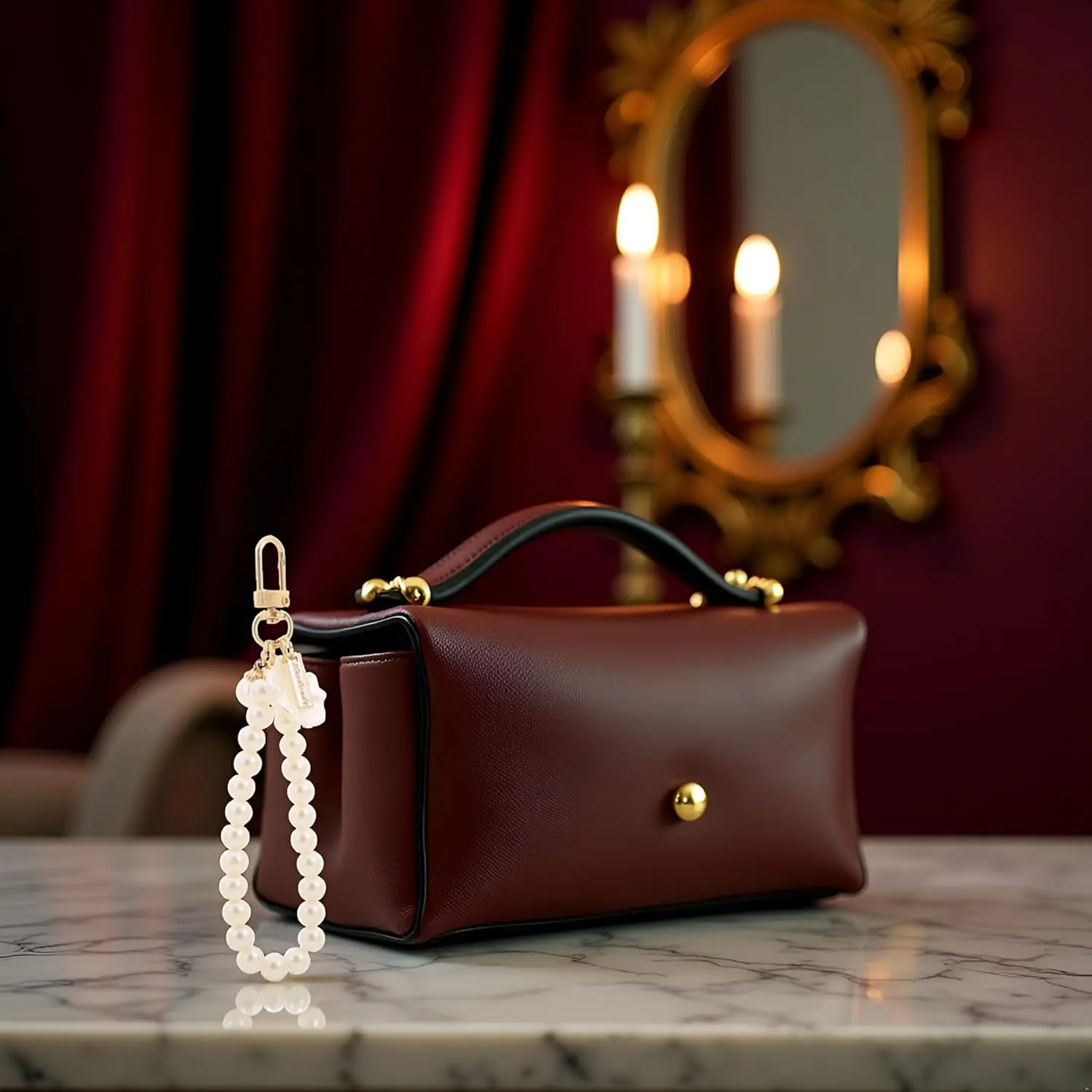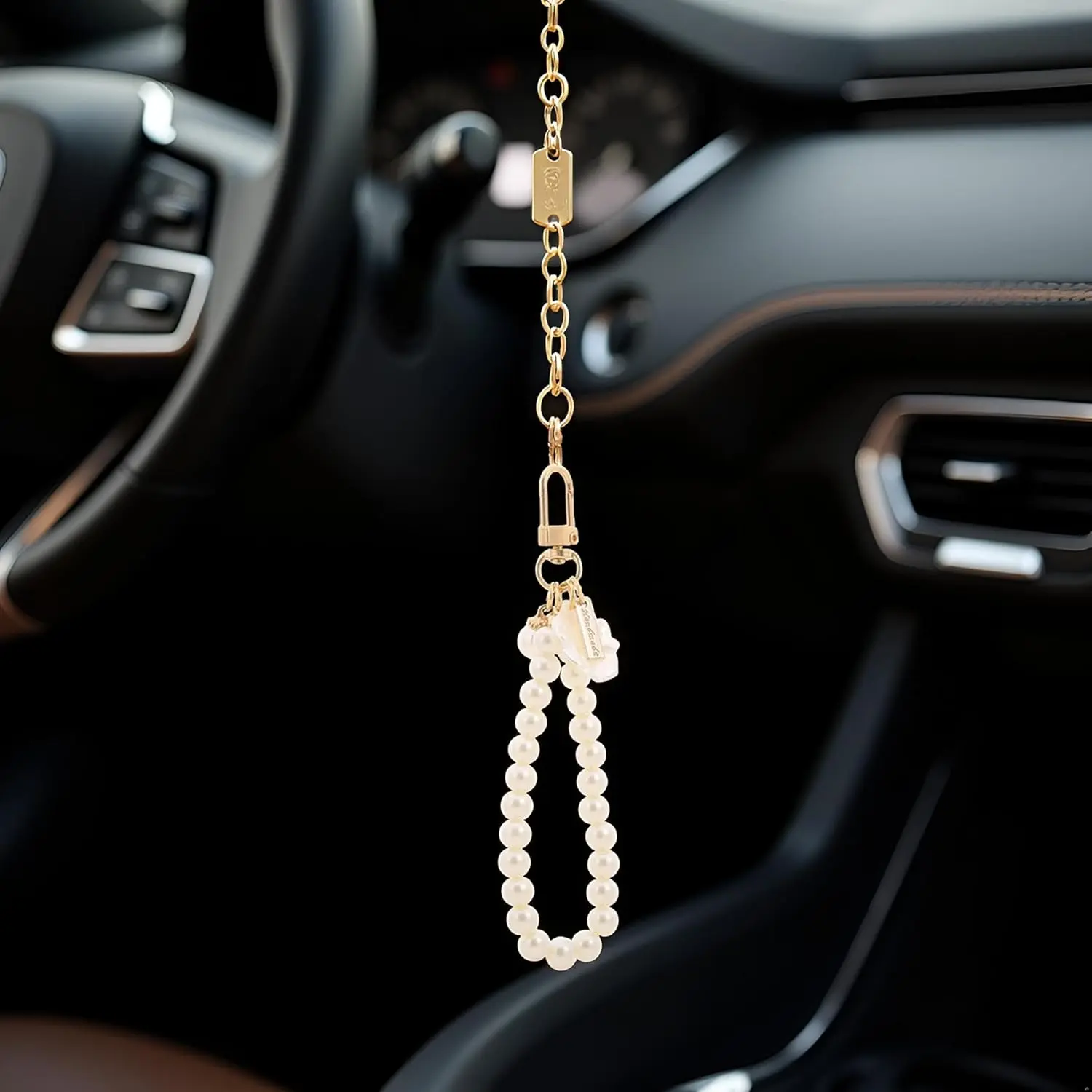 Elegant esign: A elicate imitation pearl chain aorne with a seashell charm, perfect for aing a touch of sophistication to your keys or bag.