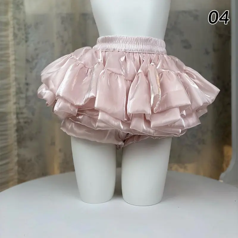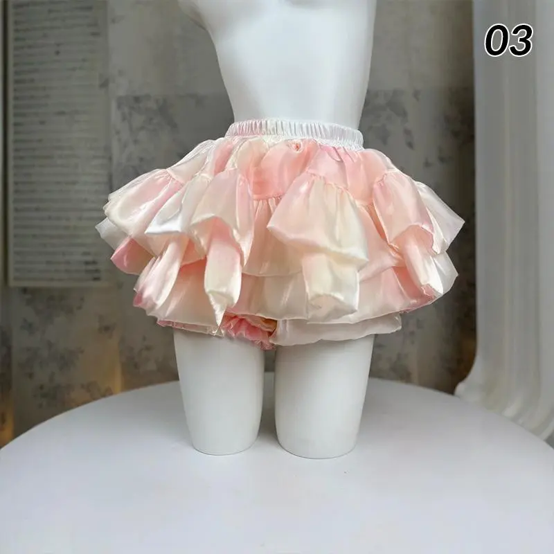 Satin Puffy Cake Skirts Women's Sweet Short Chic Ruffle Mini Skirt Preppy Style Girls Princess Lolita Cosplay Skirts Black/White