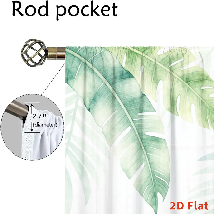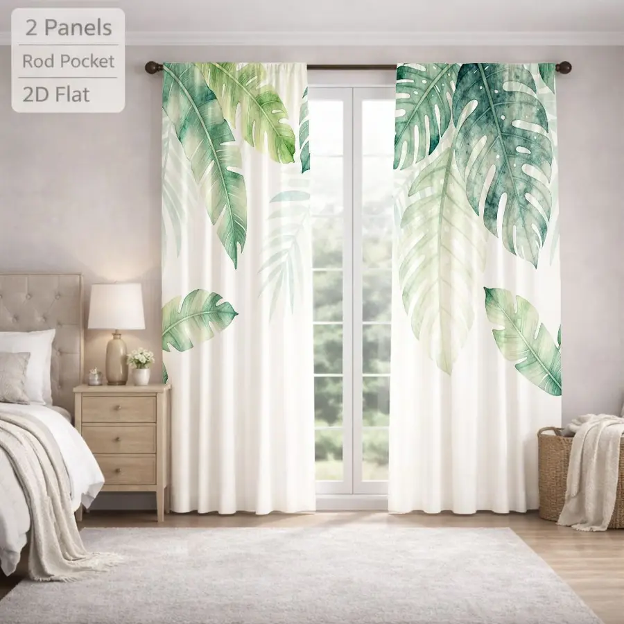 2Pcs Botanical Tropical Plant Leaf Pattern Sun Blocking Curtains Digital Printed Rod Pocket, Window Treatment For Bedroom Office Kitchen Living Room Study Home Decor
