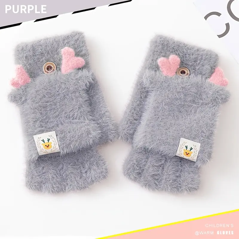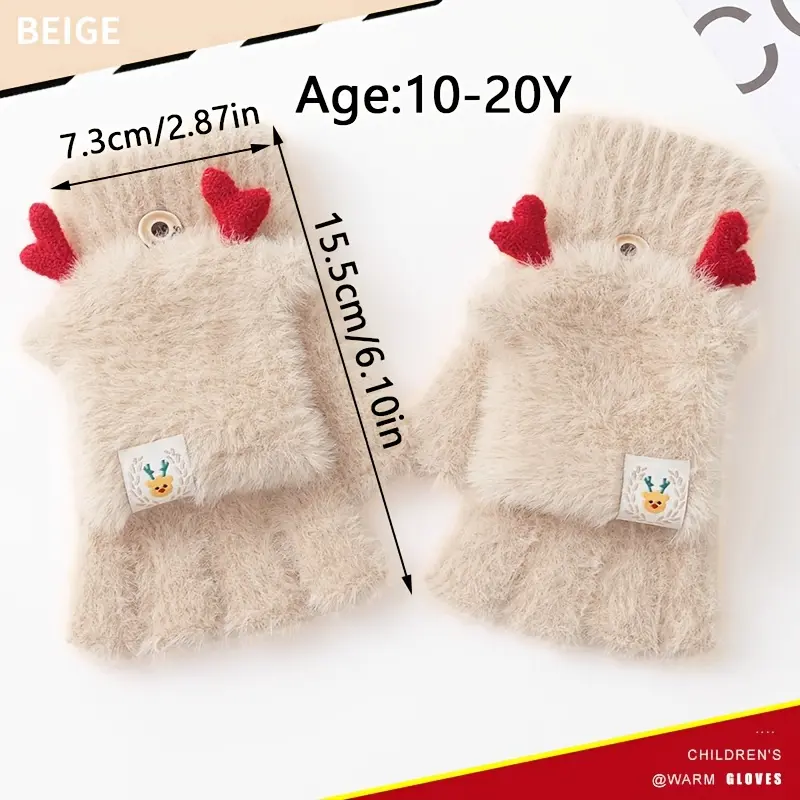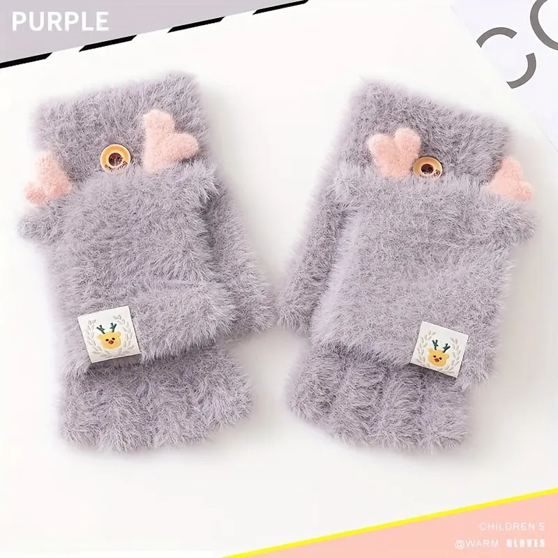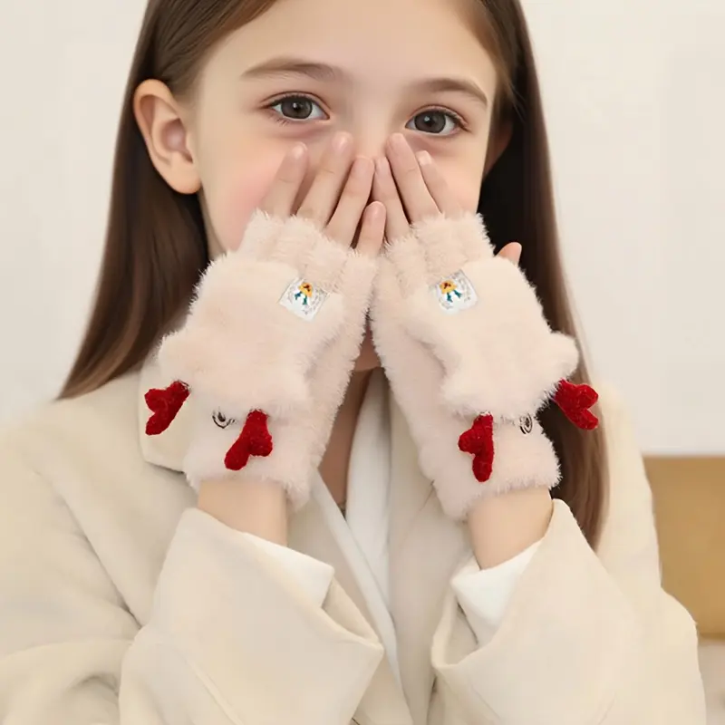 1 Pair Kids Gloves Winter Warm Thickened Flip Gloves Writing Open Finger Girl Plush Half Finger Gloves Cute Cartoon Winter Boy Five Finger Gloves Suitable for Daily Wear Outing Suitable for Children Aged 3