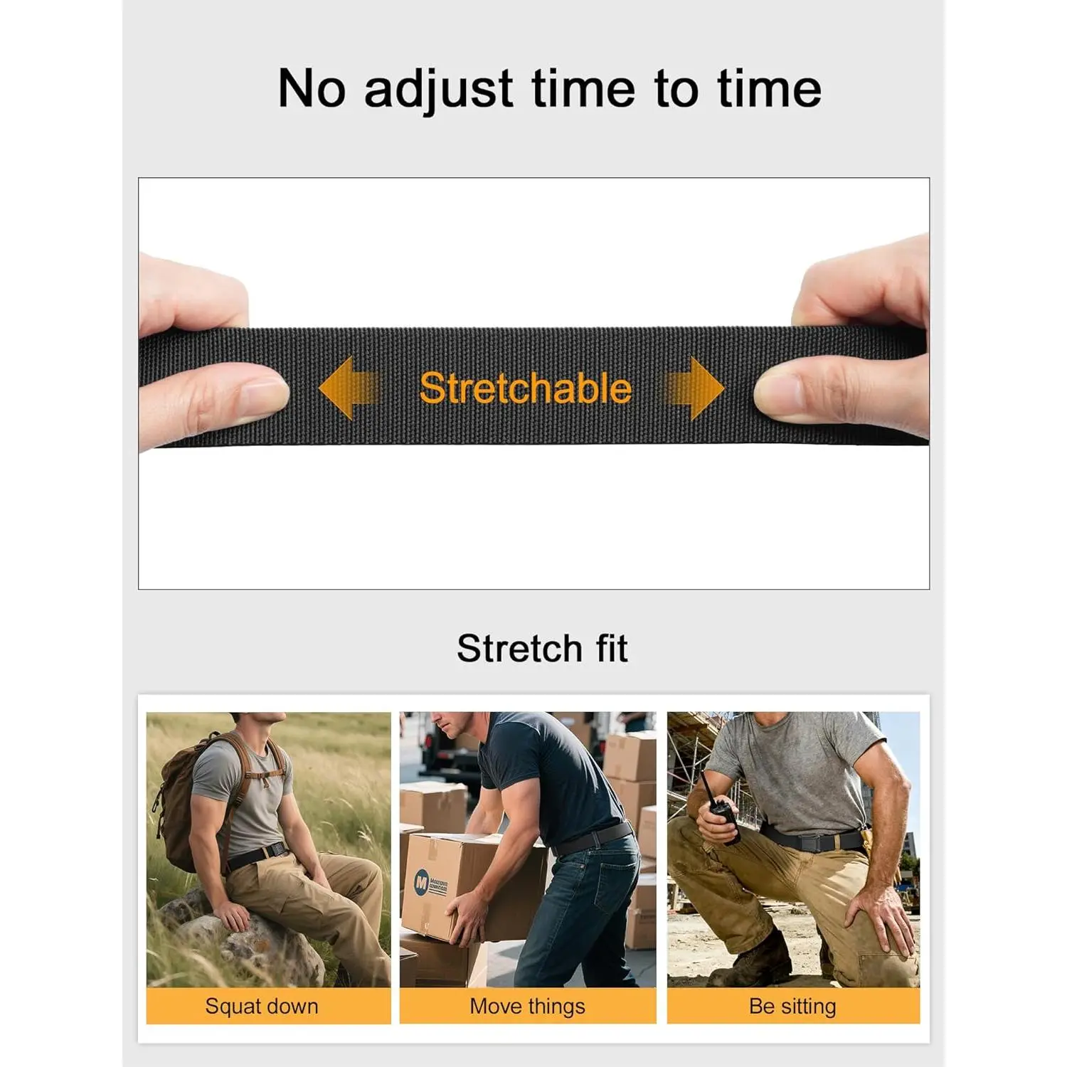 HIGH QULITY STRETCH NYLON: The strap is mae by special stretch material which is more soli than regular belt.More than that, it is very stury as well as stretch, which make your waist be more comfortable as well as stay tight, when you take large range of activities.Anyone who o physical activities for a long perio of hours will get a great use out of the tactical belt