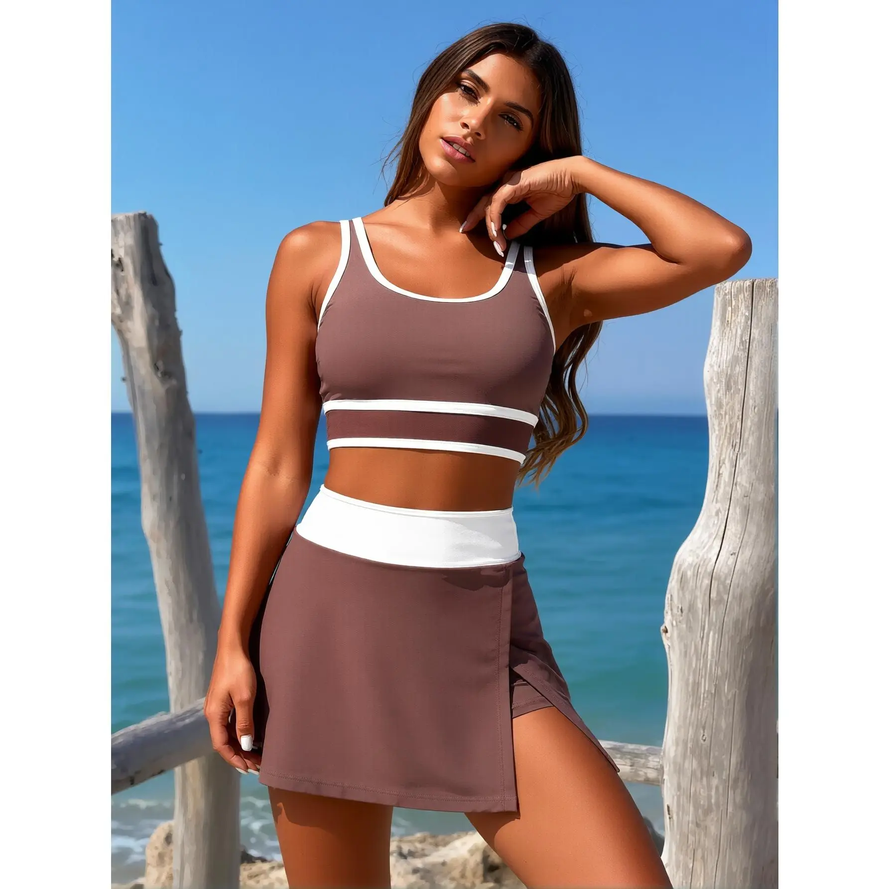 1) Two piece set swimsuit, including a swim tops and a swim skirt