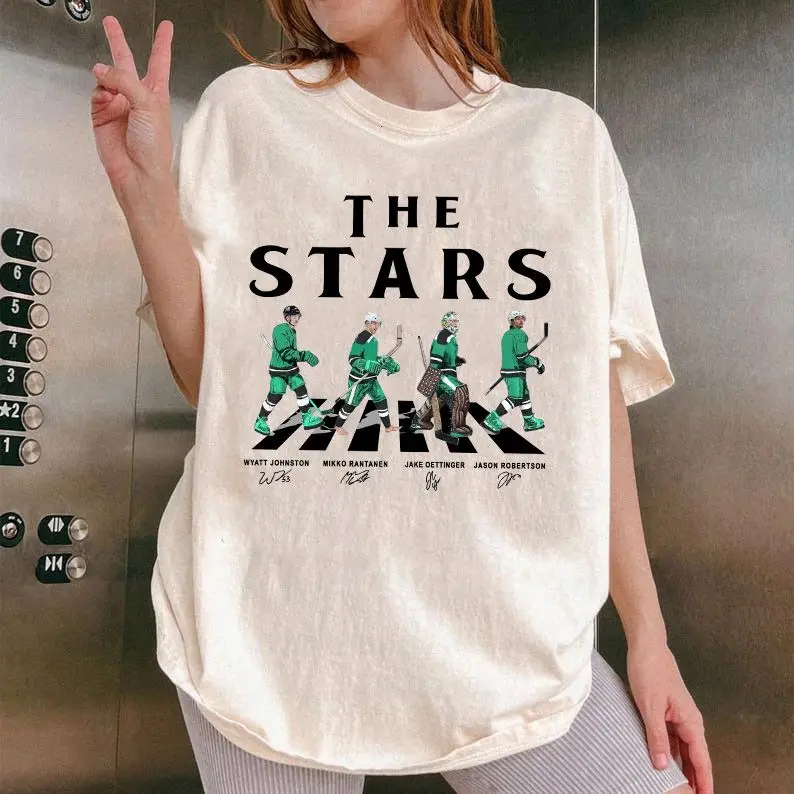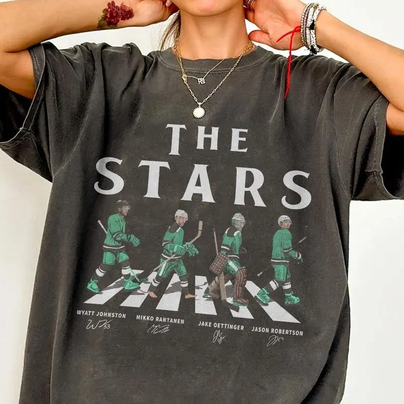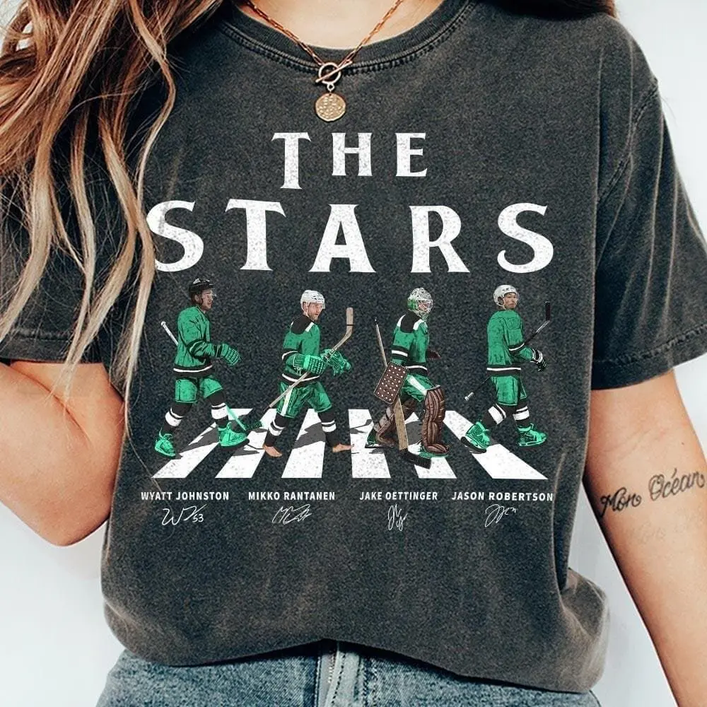 Comfort Color Dallas Walking Road Signatures Ice Hockey Shirt, Jason Robertson Mikko Rantanen Gift For Fan Hockey Unisex
