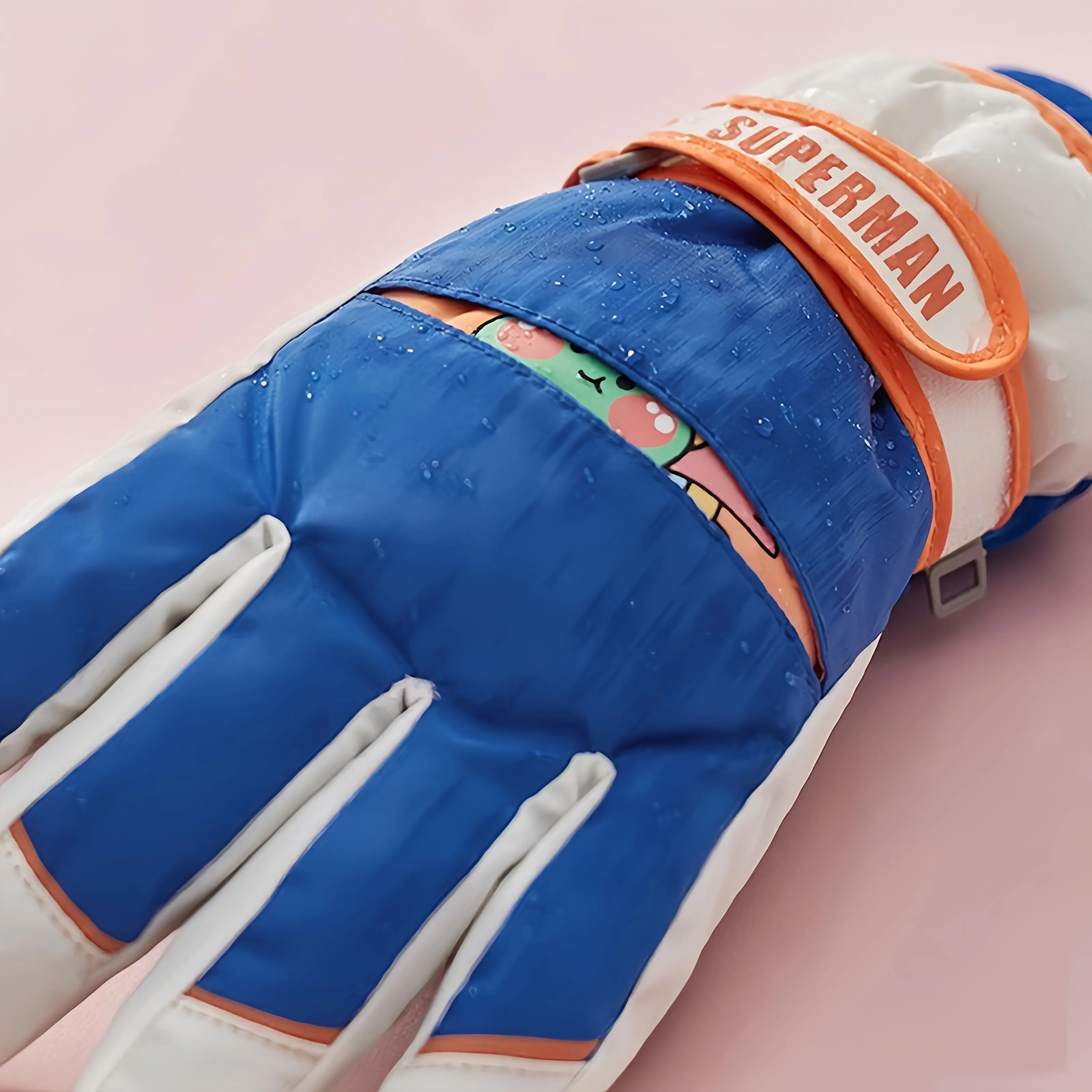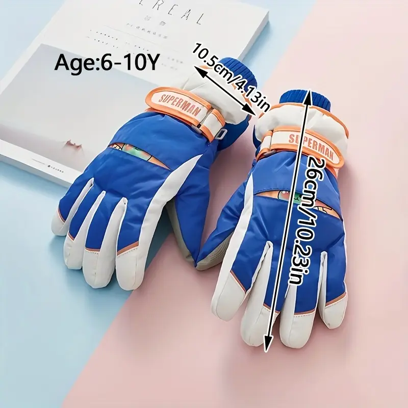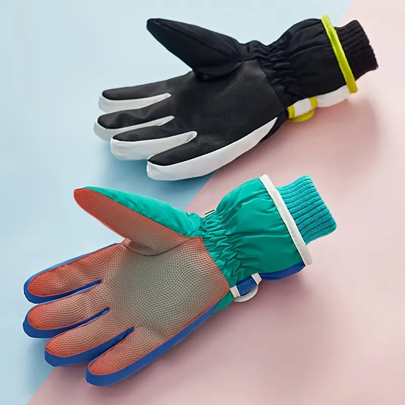 5. 1-Pair Winter Ski Gloves - Cold Weather Thermal Gloves with Wrist Strap & Color-Coded Tips, Soft Plush Inner Lining - Ideal for Skiing, Snowboarding, Snowplay - Boys & Girls Ages 6-10 Years - Multi-Color Options (Blue, White, Black, Orange, Green, Pink, G