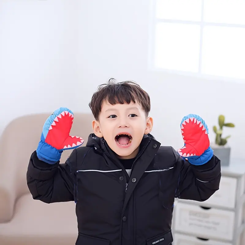 5. Kids Ski Gloves - Thermal High Quality Windproof Cold Weather Gloves with Shark Design, Adjustable Strap for Boys & Girls - Winter Sports, Snowboarding, Skiing - Christmas Gifts (Blue), Snowboarding Gear