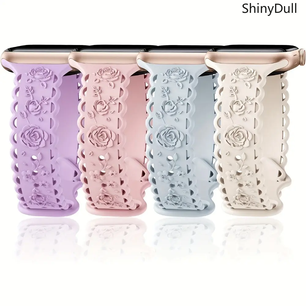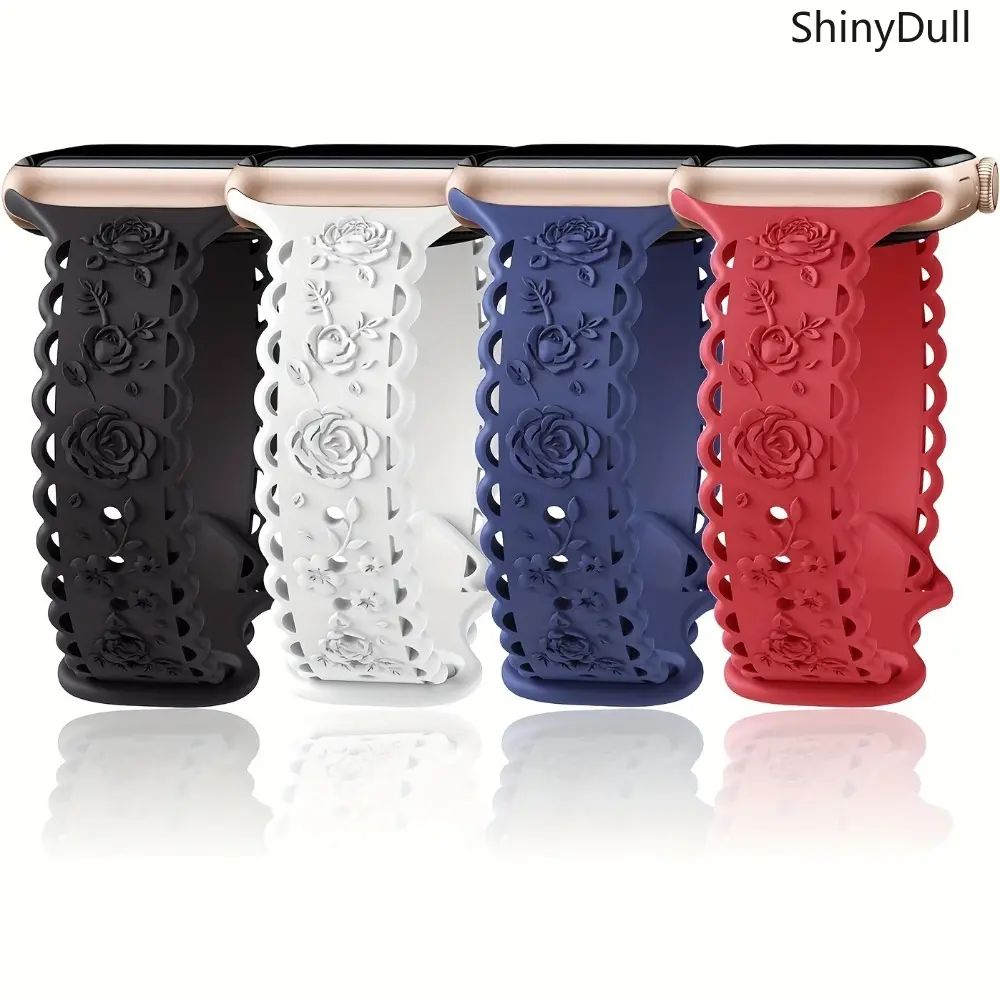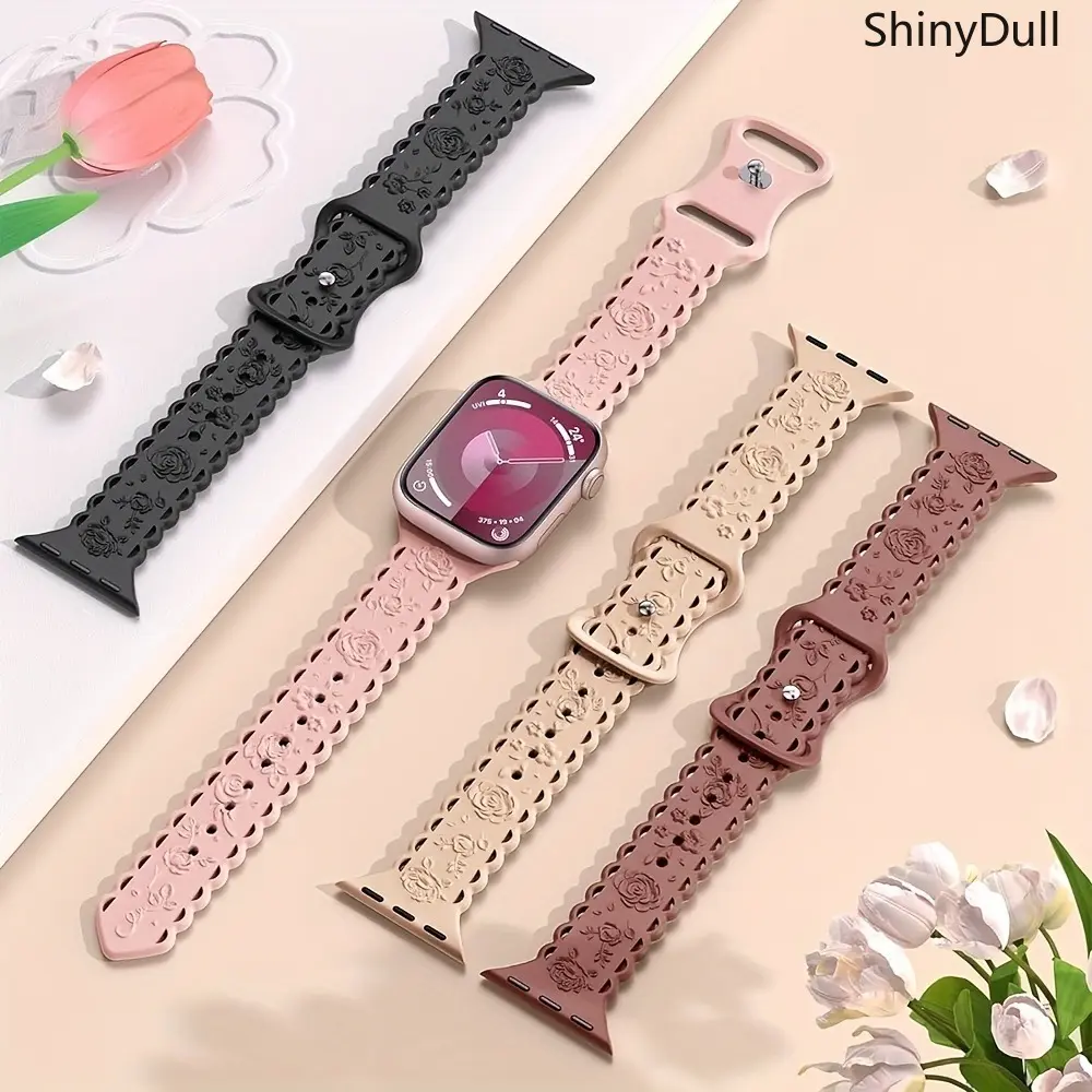5. 4-Pack Lace Engraved Rose Apple Watch Bands – Slim Lightweight Sport Strap 38–49mm (Series 1–10, SE, Ultra / Ultra 2), Women
