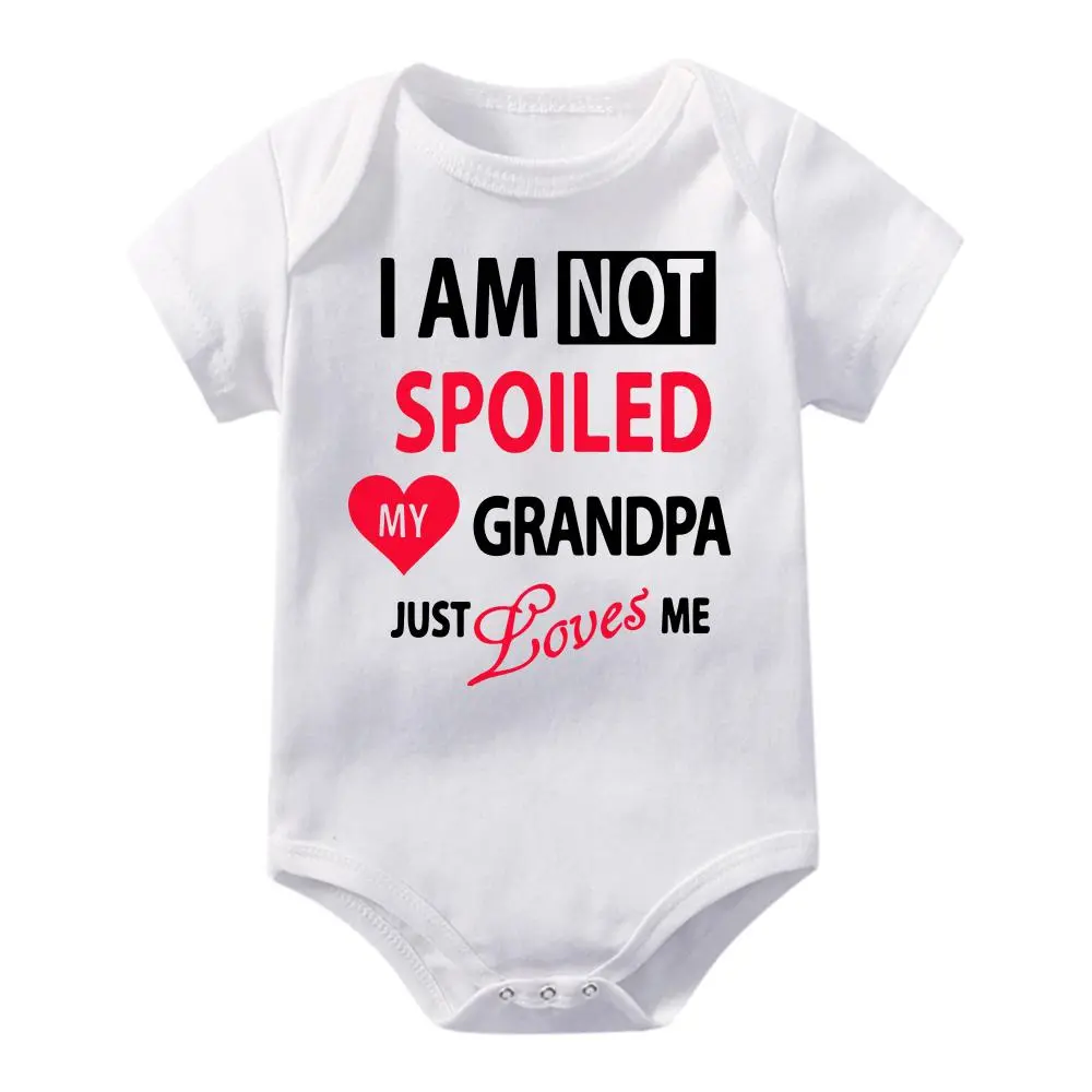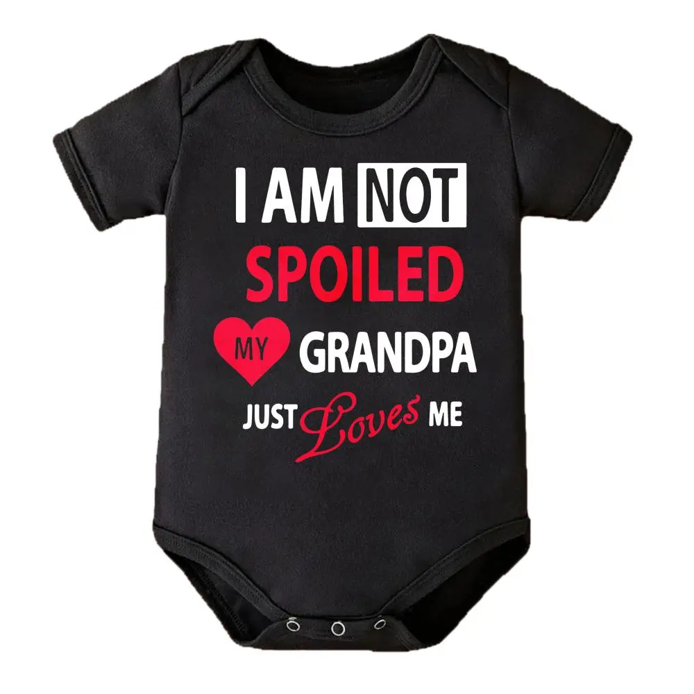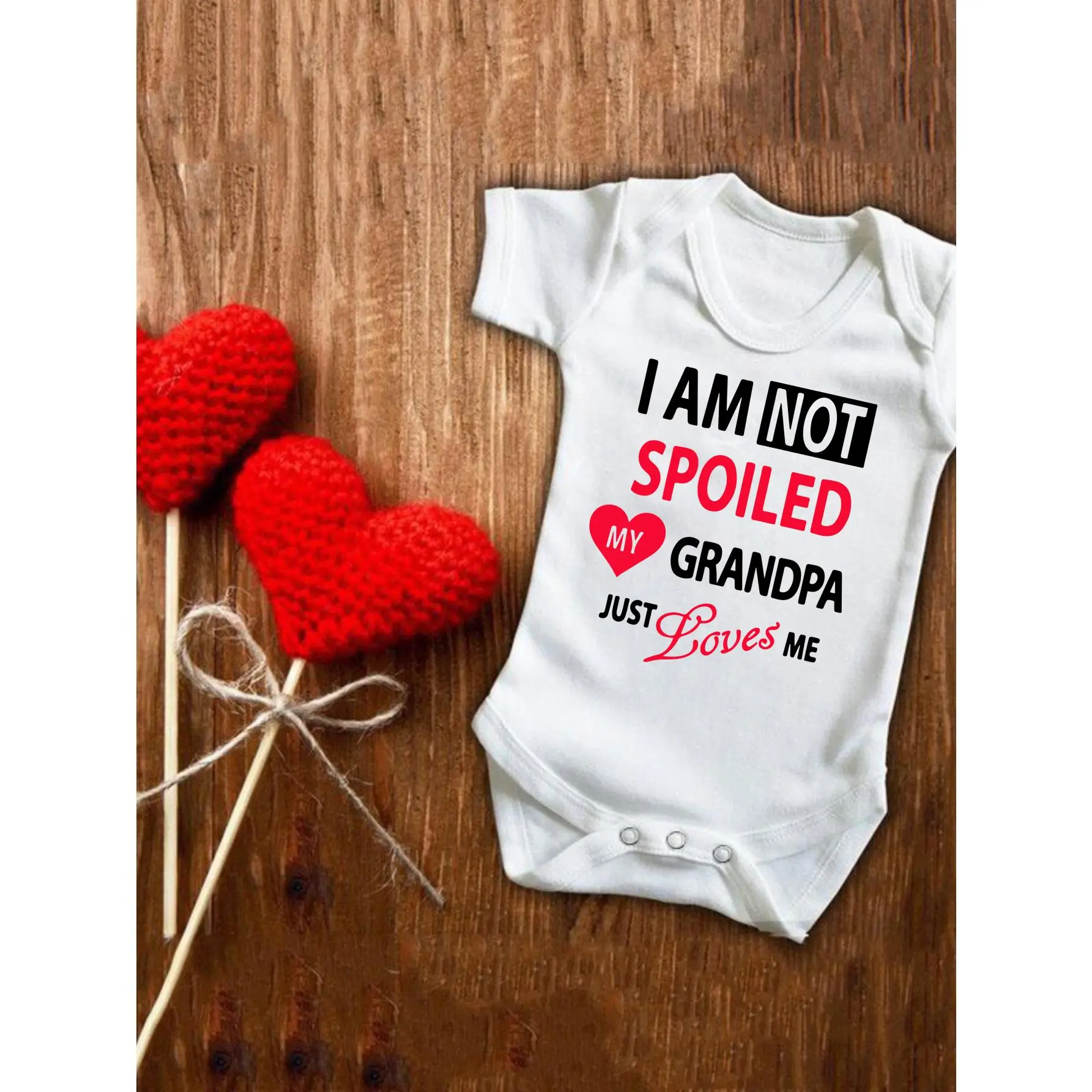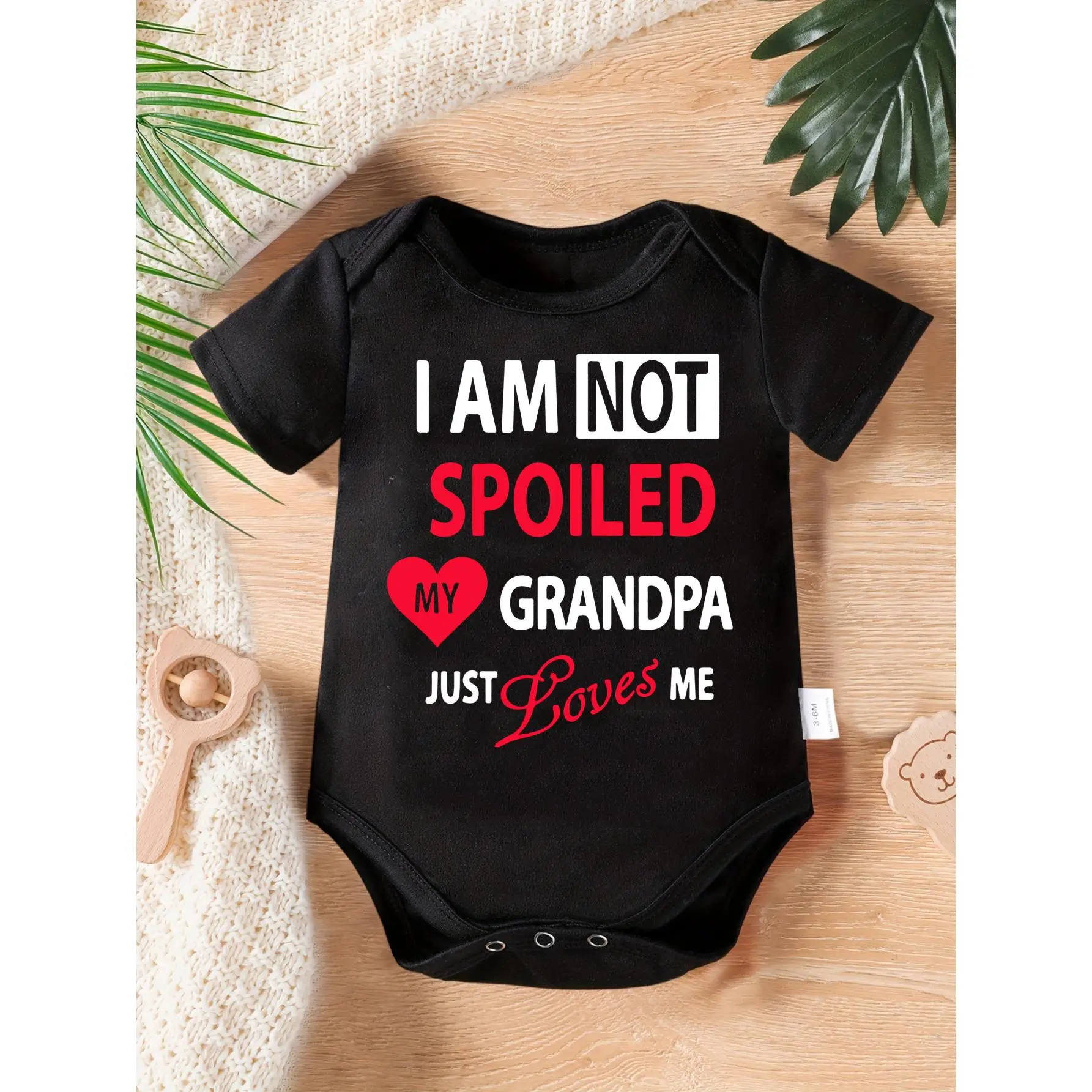 Cute Baby Bodysuit With I Am Not Spoiled My Grandpa Just Loves Me Print Soft Versatile Round Neck Button Detail Regular Fit All Seasons Knitted Fabric Onesie