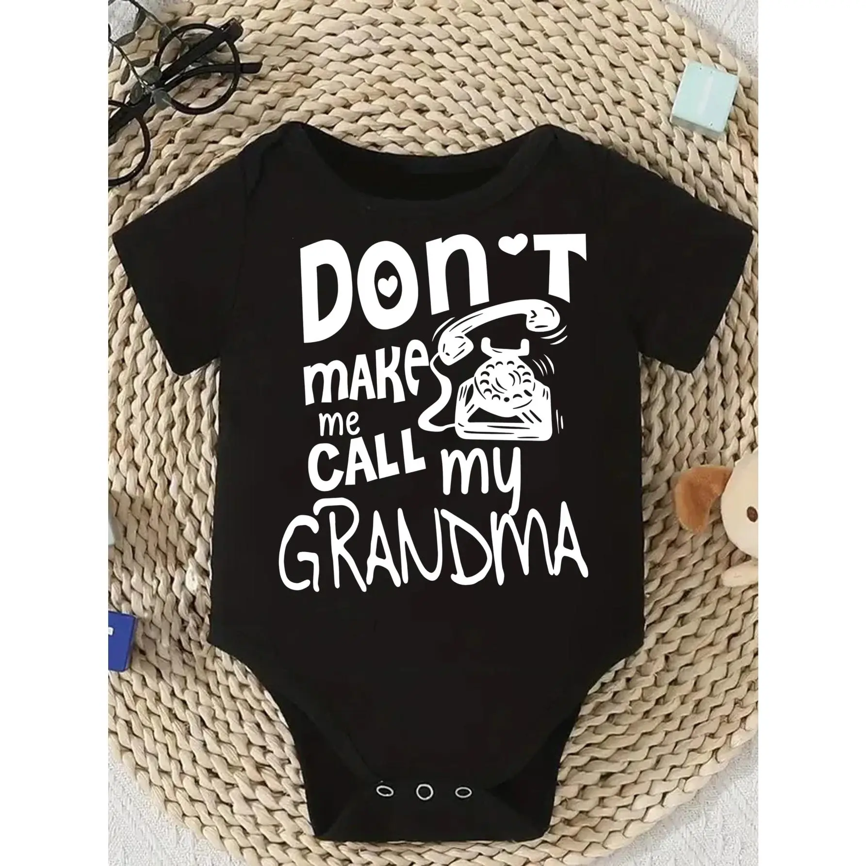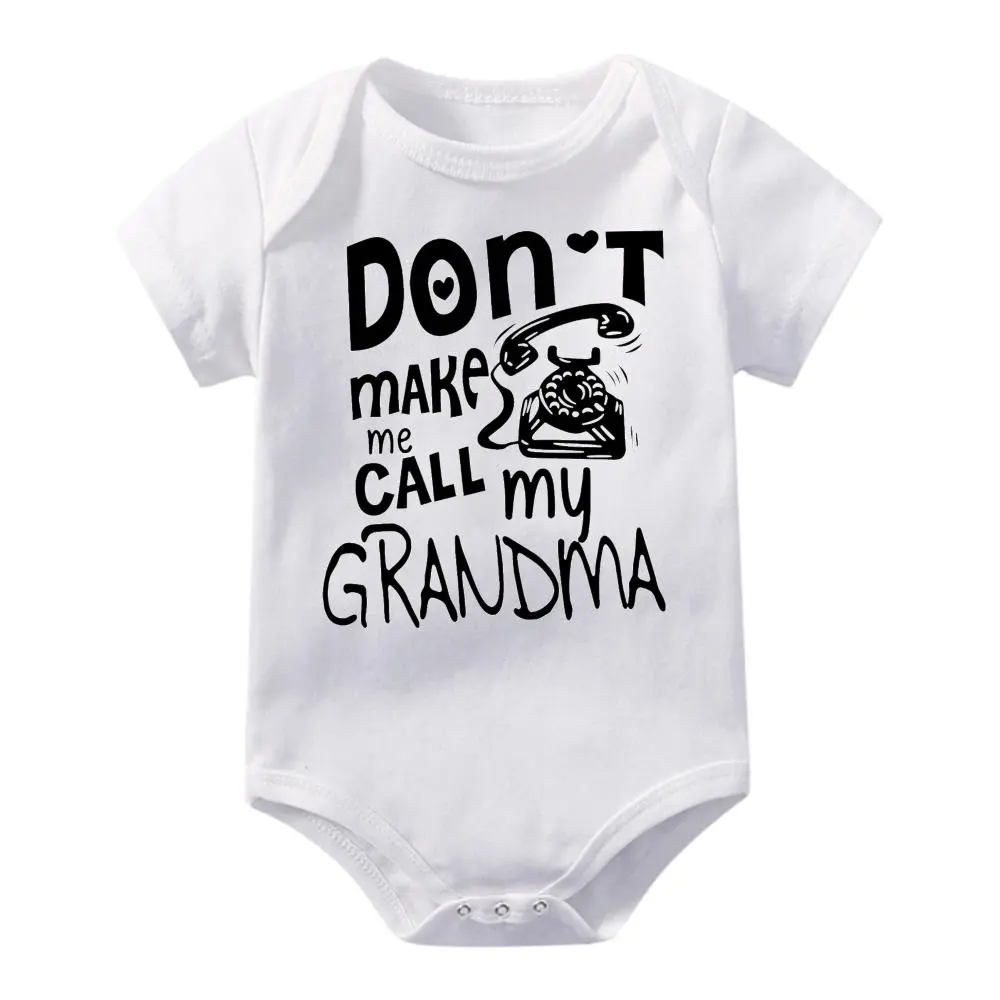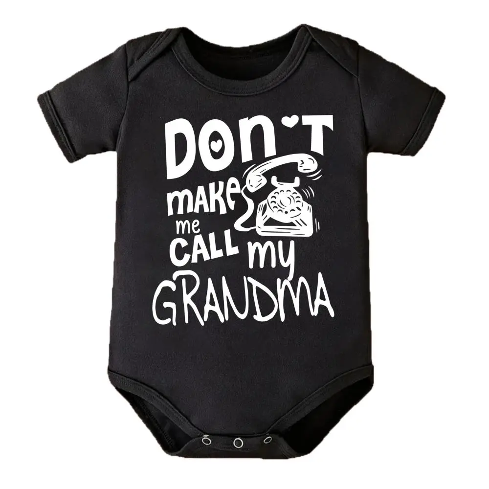 Cute Baby Bodysuit With Don T Make Me Call My Grandma Print Soft Versatile Round Neck Button Detail Regular Fit All Seasons Knitted Fabric Onesie
