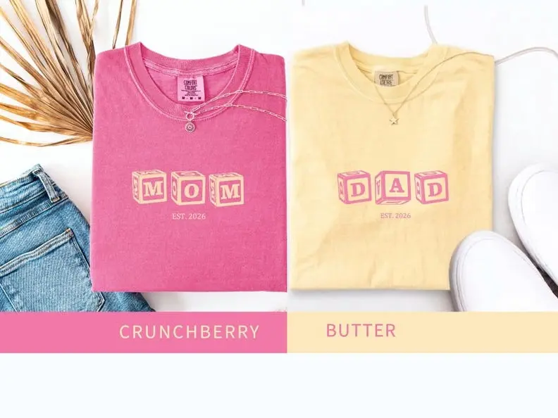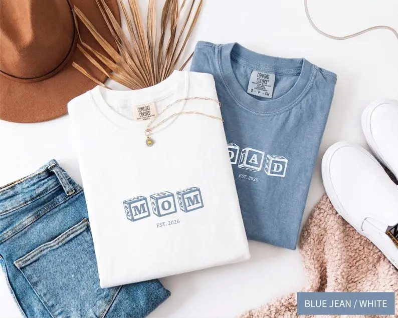 Custom Mom Dad Shirts, Pregnancy Announcement Couple Tees, Minimalist Parent Shirt Set, New Mom Gift New Dad Gift, Baby Announcement Shirt, Mother Father Matching Tee Soft Cotton
