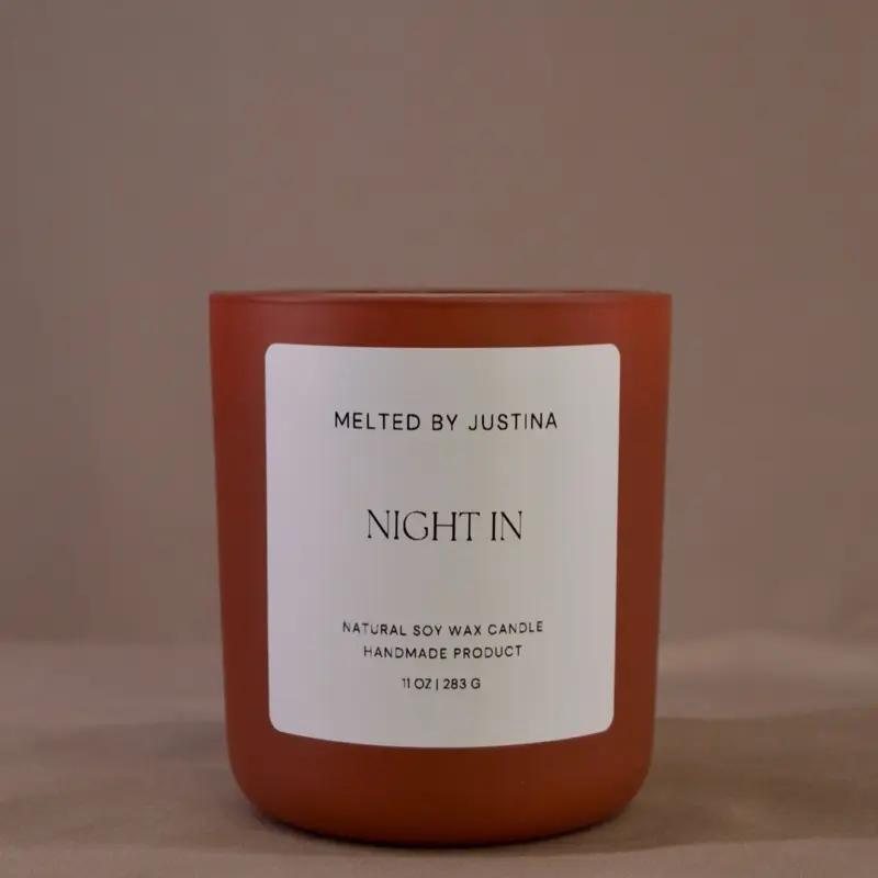 NIGHT IN opens with sparkling crystallized ginger and bright Valencia orange, flows into soft orchid petals, coconut husks, and rich caramel, and settles into indulgent crème brûlée, vanilla soufflé, and warm ambrette glaze. Cozy, sweet, and just a little decadent—the kind of scent you linger in.