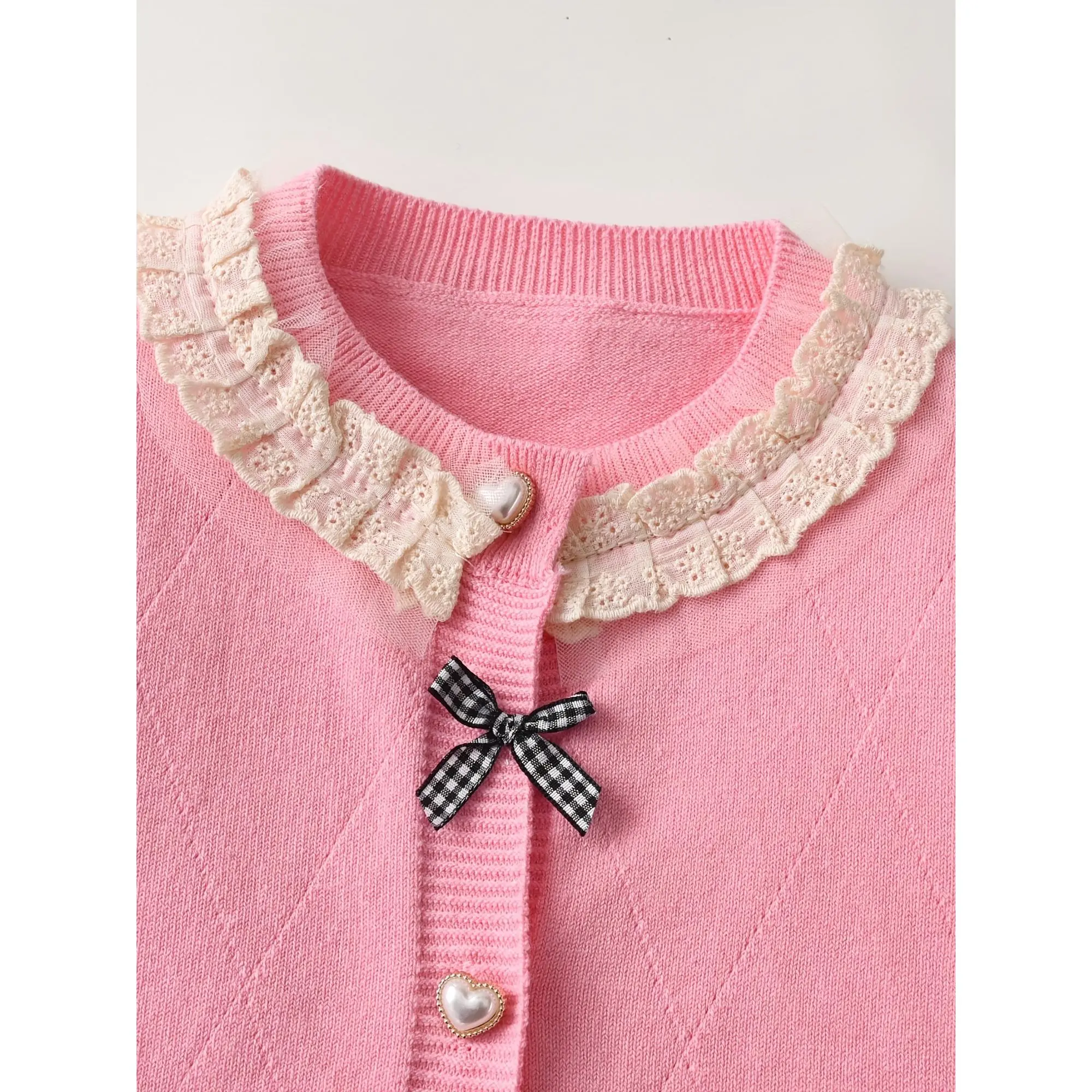 Girls' Elegant Knit Cardigan Sweater - Beige & Black Bow Accent Sweater, Soft Long Sleeve Button-Front Closure, Warm Breathable Sweater for Spring/Fall, Perfect for Everyday, Parties, School, and Outdoor Activities - Girls' Sweater, Party Outfit, ClassicGirls' Elegant Knit Cardigan Sweater - Beige & Black Bow Accent Sweater, Soft Long Sleeve Button-Front Closure, Warm Breathable Sweater for Spring/Fall, Perfect for Everyday, Parties, School, and Outdoor Activities - Girls' Sweater, Party Outfit, Classic