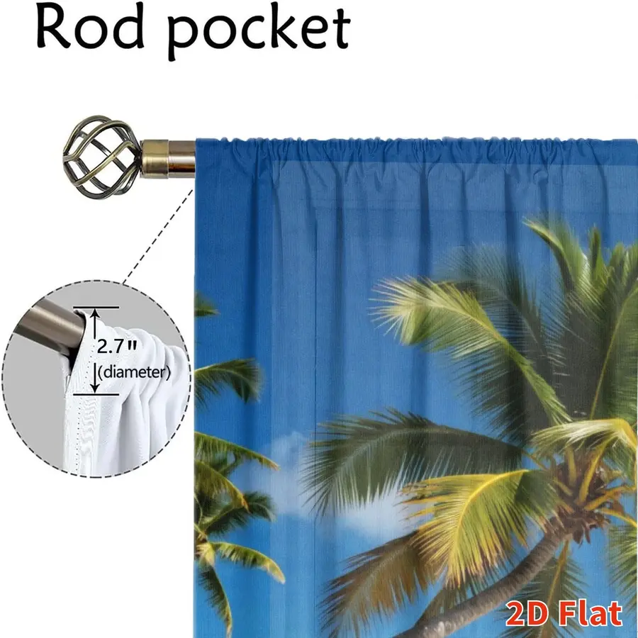 2Pcs Beach Landscape Palm Tree Ocean Scenery Sun Blocking Curtains Digital Printed Rod Pocket, Window Treatment For Bedroom Office Kitchen Living Room Study Home Decor