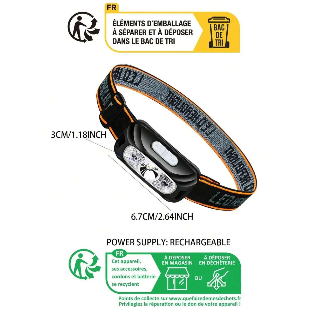 1pc Bright LED Sensor Headlamp, Mini Portable USB Rechargeable Rotatable Headlight For Outdoor Adventure, Camping, Fishing