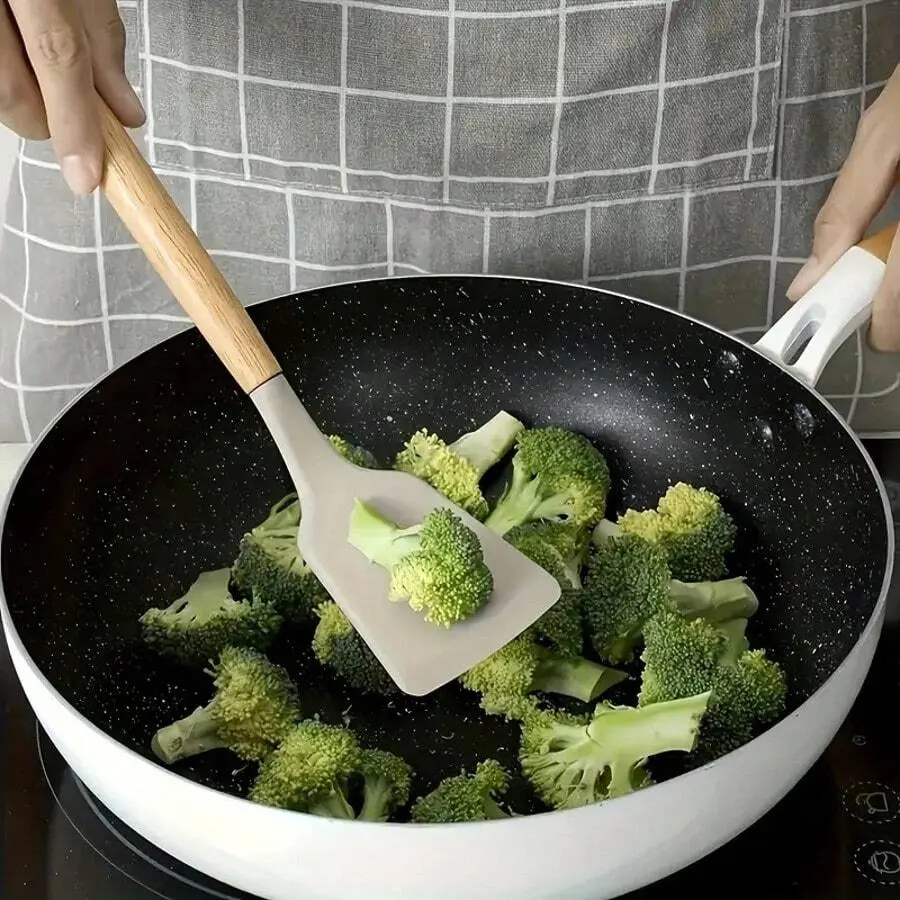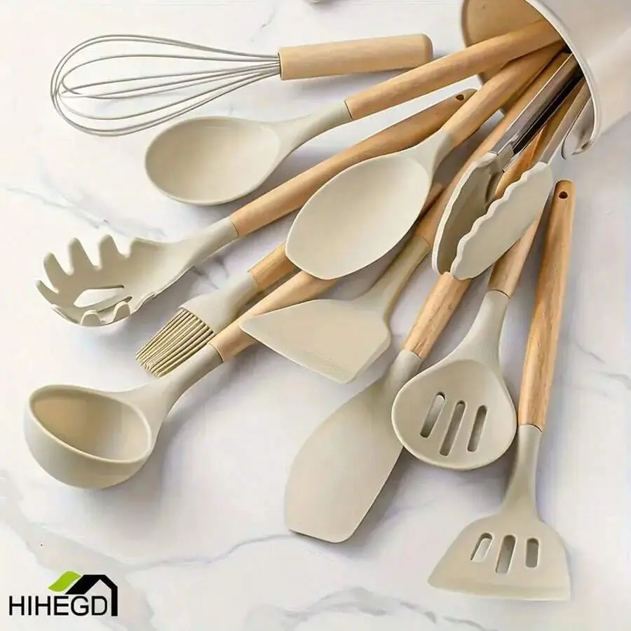 TAIMASI [Non-Stick Utensil Set] 12pcs Non-Stick Silicone Kitchen Utensil Set With Wooden Handles | Saf-E And Easy To Clean - Perfect For Cooking And Baking - Ideal For Back To School And Dorm Essentials