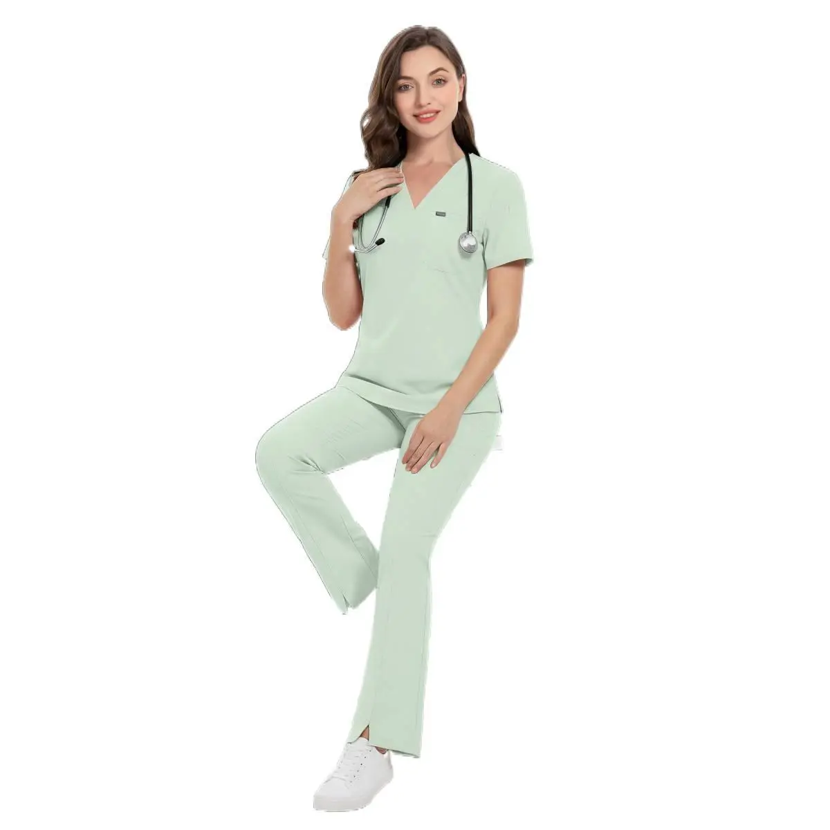 NiaaHinn new V-neck short-sleeve scrub suit for women is a quick-drying short-sleeve surgical gown suitable for nurses and pet hospital workers. It is a 12-hour uniform with comfortable and skin-friendly fabric