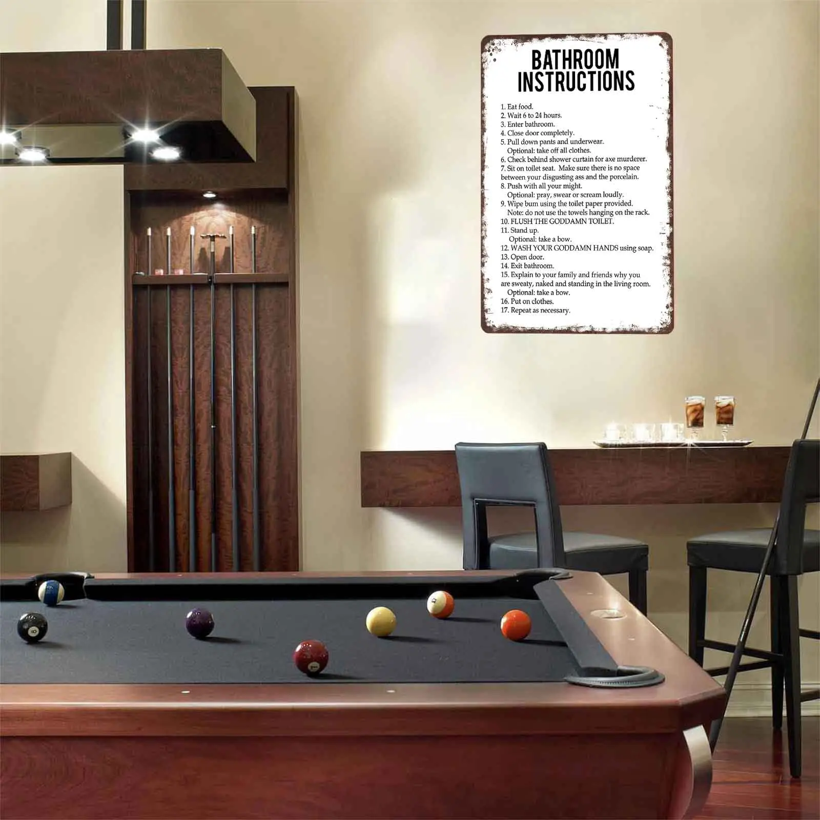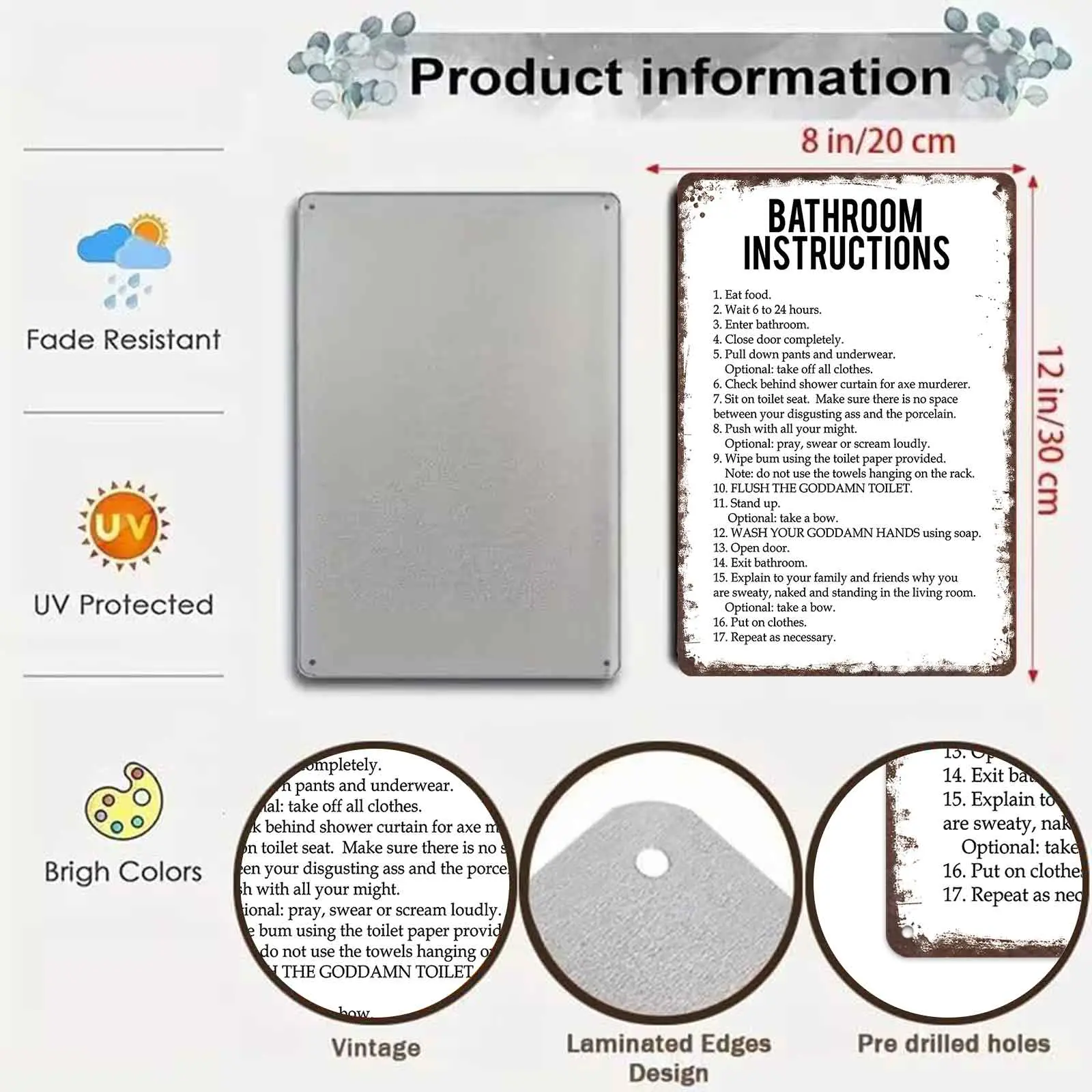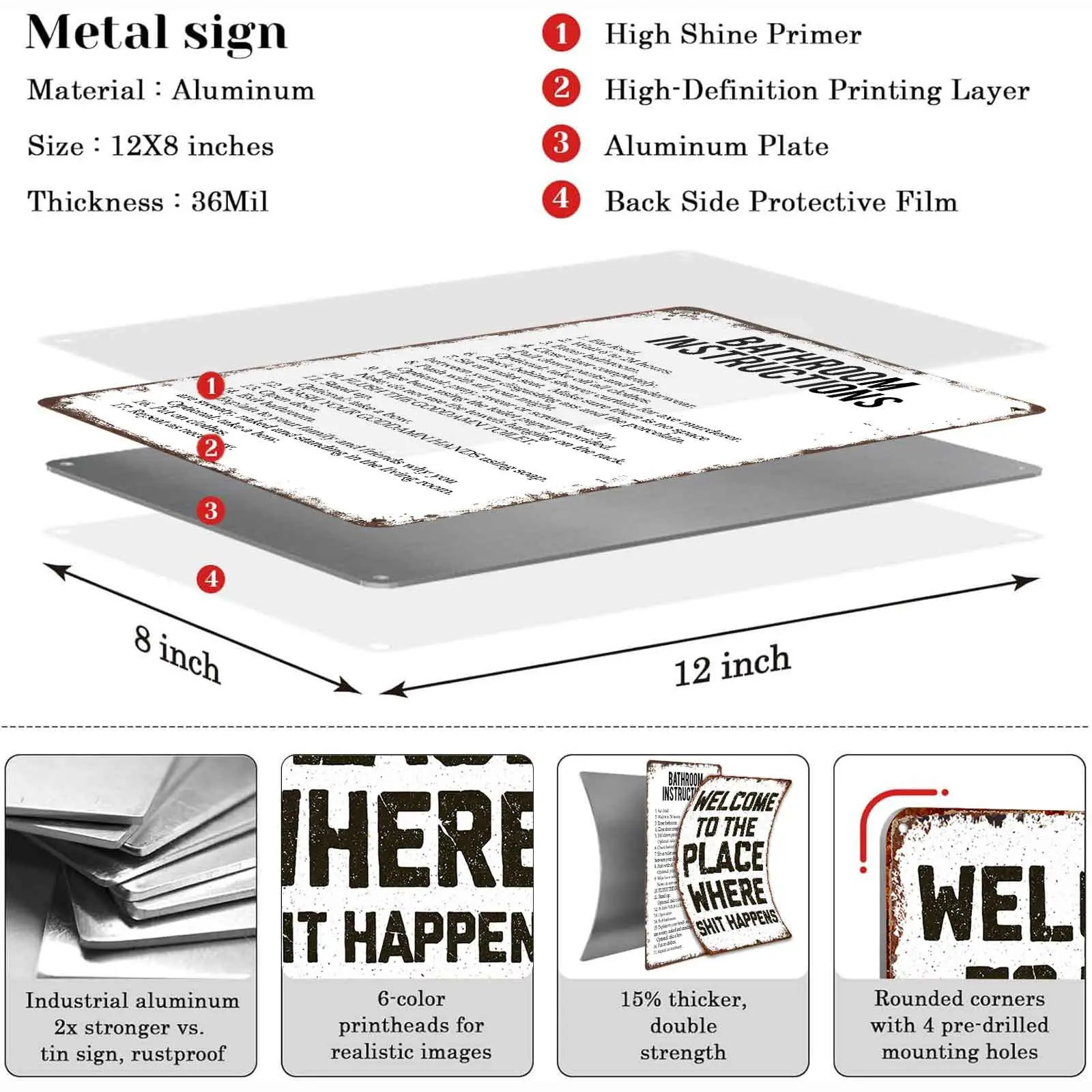 8x12 Inch Aluminum Metal Sign - Hilarious "Bathroom Instructions" Funny Toilet Wall Art | Perfect for Home Bathroom, Guest Restroom, Man Cave, Bar, Dorm, and Apartment Decor | Retro Rustic Tin Plaque, Easy to Hang, Great Gag Gift for Housewarming & Wh