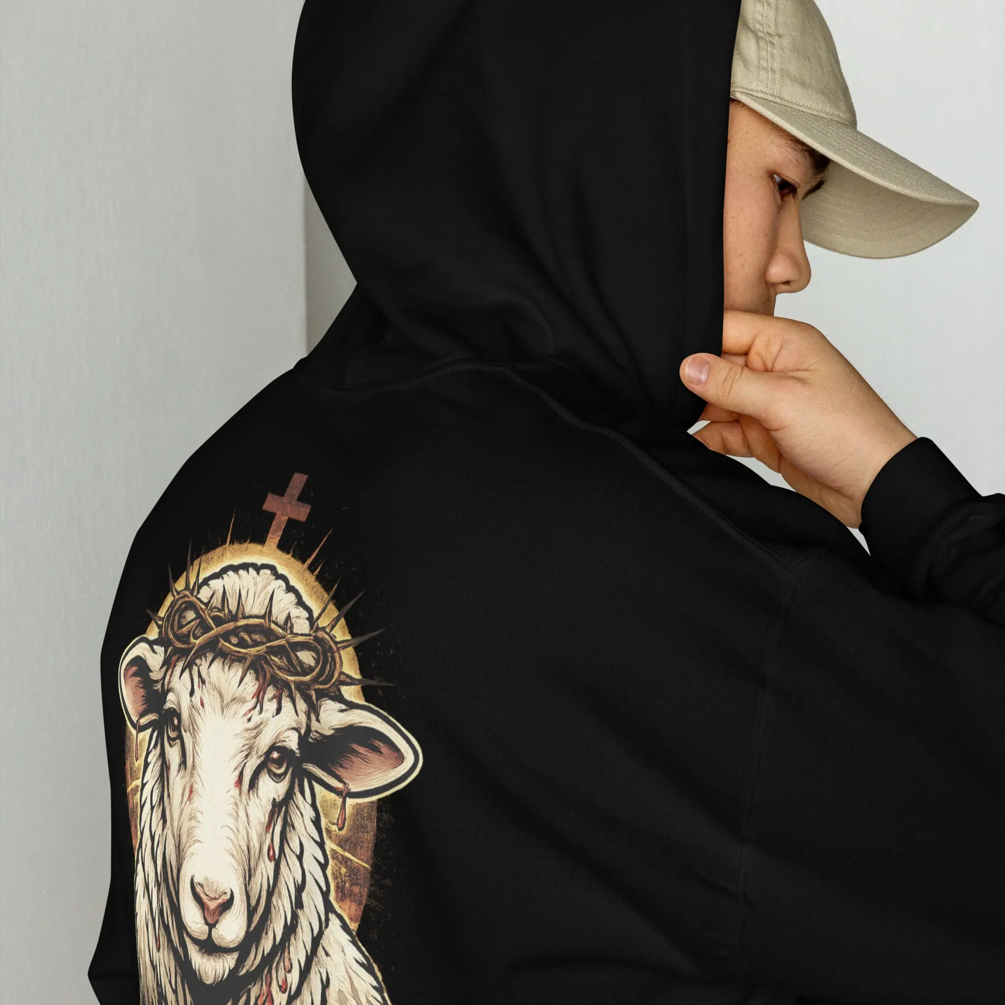 The crucified lamb is more than an image—it’s a reminder of redemption, grace, and victory. Designed to reflect the weight of the cross and the power of what was finished on it, this hoodie carries a message that goes beyond fashion.