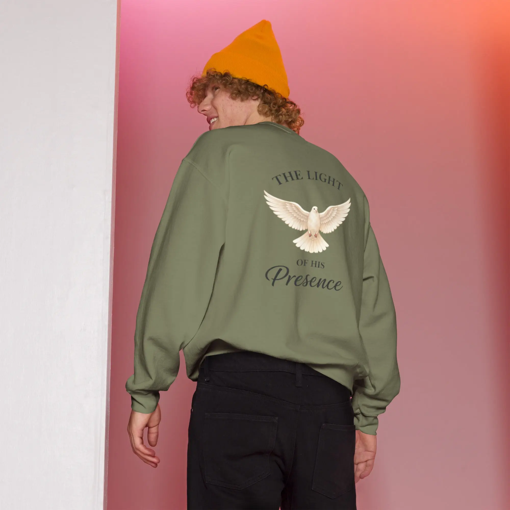 This design features a symbolic dove—representing the Holy Spirit, peace, and divine presence—paired with a message that speaks without needing to be loud.