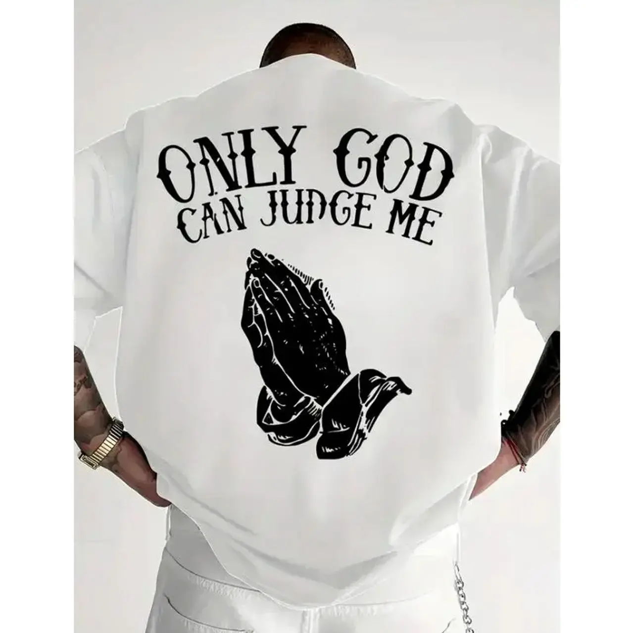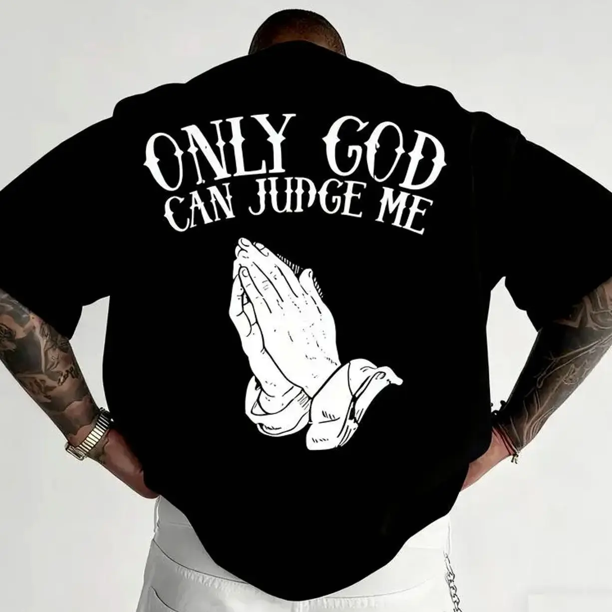 5. “Faith-Based Streetwear T-Shirt – ‘Only God Can Judge Me’, Oversized, Black & White, Trending”