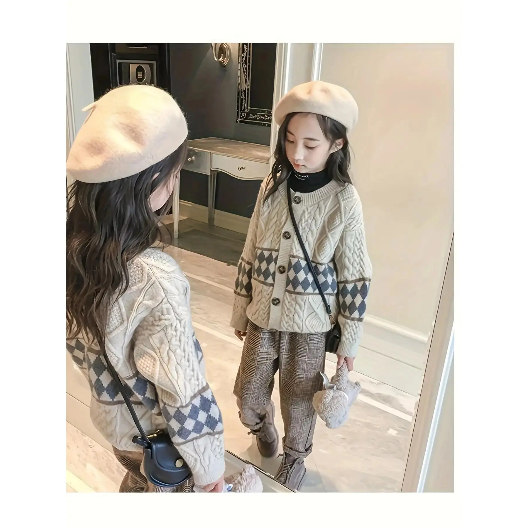 5. Girls' Sweater Jacket Spring and Autumn New Korean Style Fashionable Casual Knitted Cardigan, Suitable for 3-14 Years Old Girls, Perfect for Daily Wear, Holiday Activities, School, as a Gift, Knitted Cardigan, Sweater Cardigan, Sweater Card
