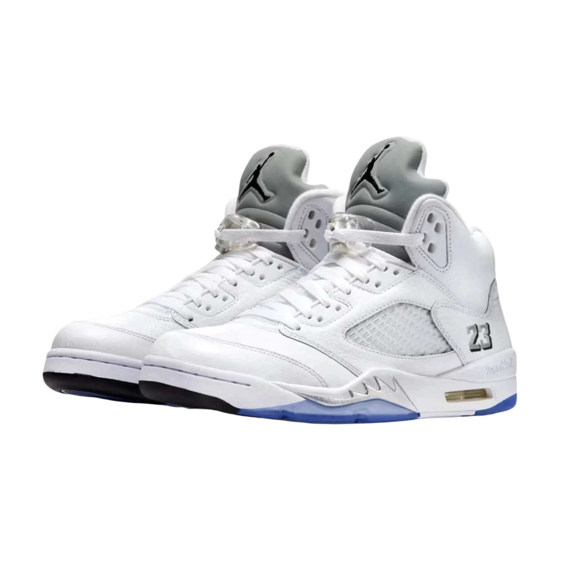 The Air Jordan 5 Retro OG “White Metallic” (2026) brings back a true OG-style AJ5 in a clean, wearable setup—white leather uppers, Metallic Silver hits, and black contrast detailing, anchored by the AJ5’s signature elements like the reflective tongue, mesh side panels, and the classic shark-tooth midsole. The 2026 return is widely previewed as staying faithful to the original look and is slated to release April 25, 2026 under style code HQ7978-103