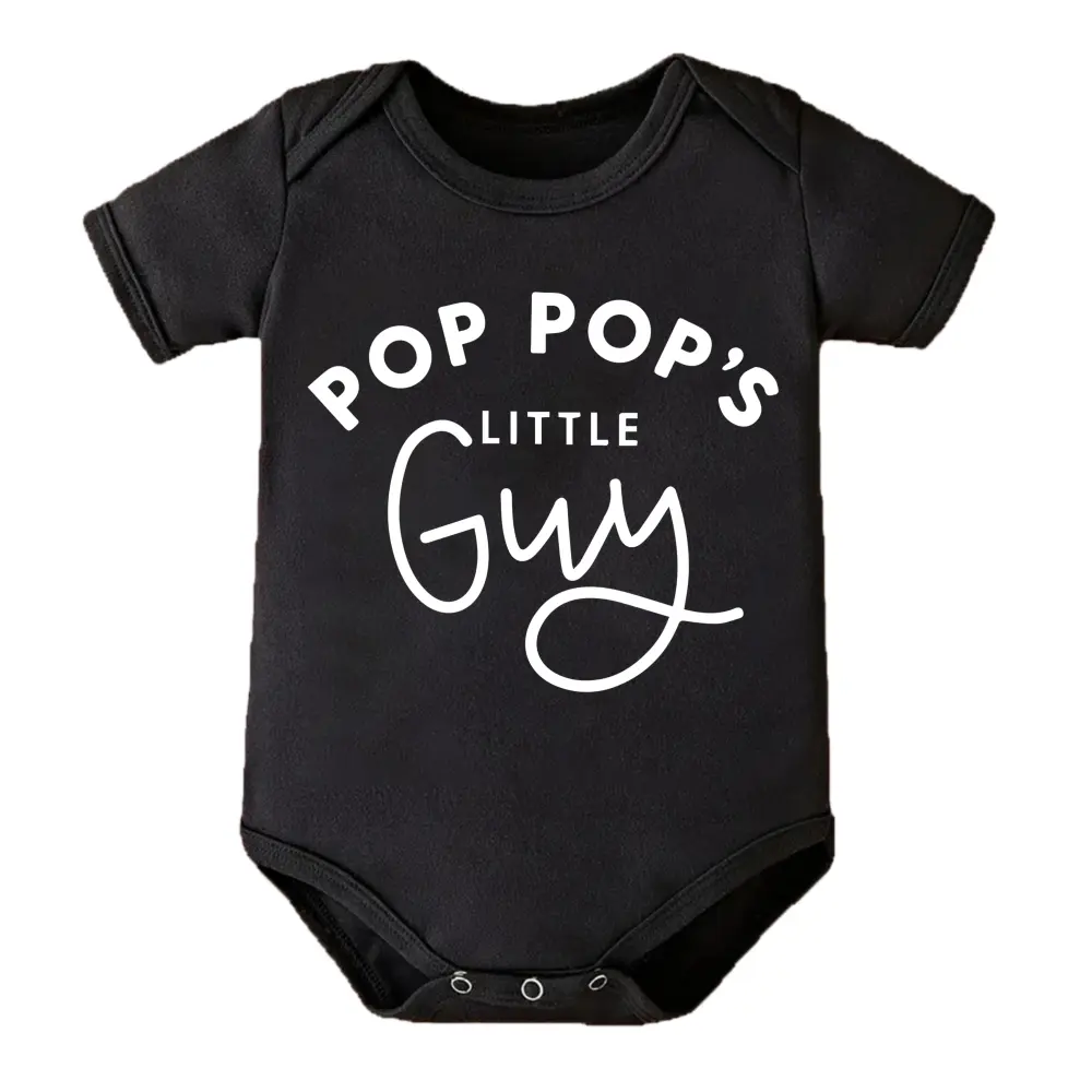 Cute Baby Bodysuit With Pop Pops Little Guy Print Soft Versatile Round Neck Button Detail Regular Fit All Seasons Knitted Fabric Onesie