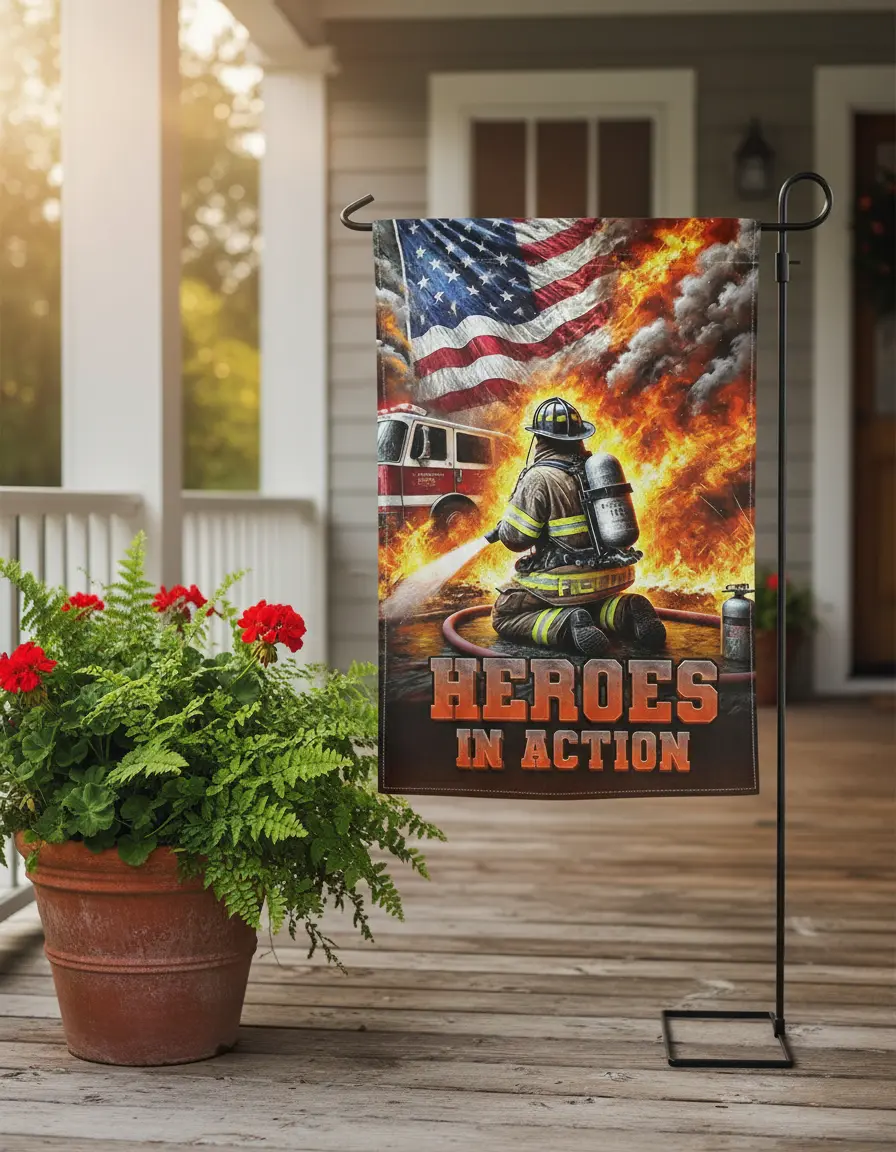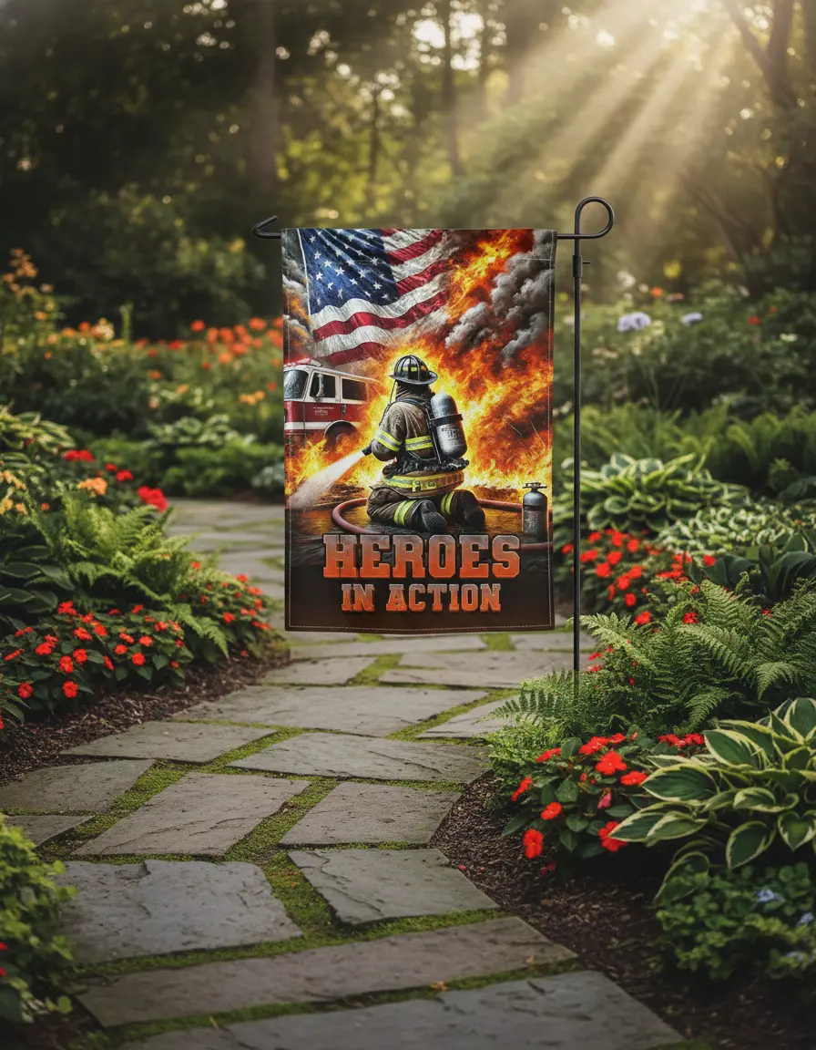 Firefighter Garden Flag 12x18 Inch – Double Sided Yard Flag, Patriotic Outdoor Decor, Firefighter Tribute, First Responder Gift.