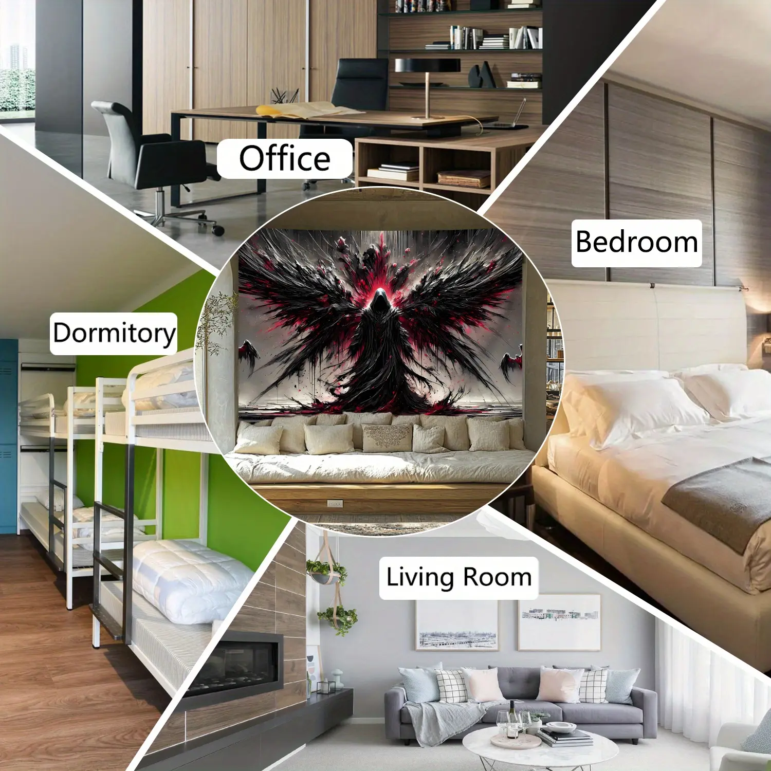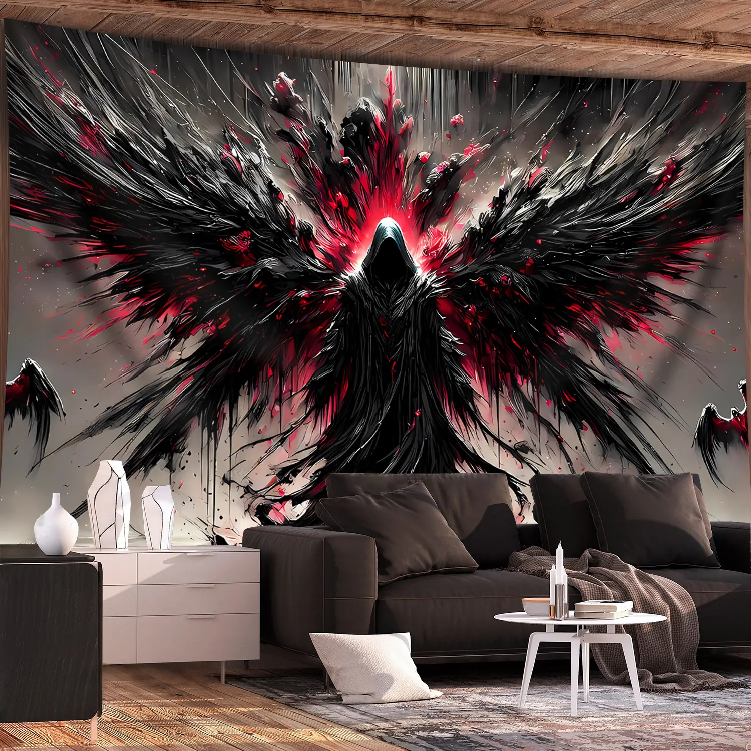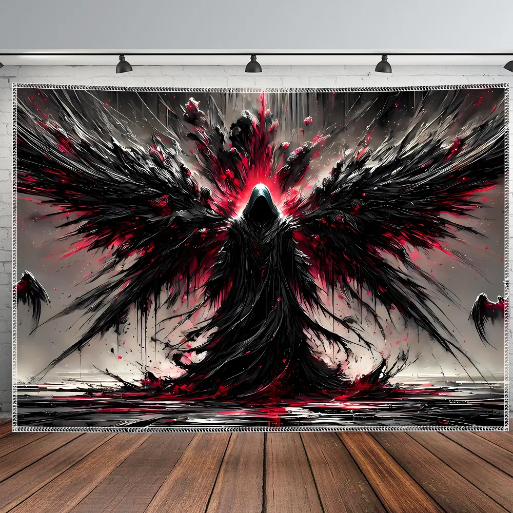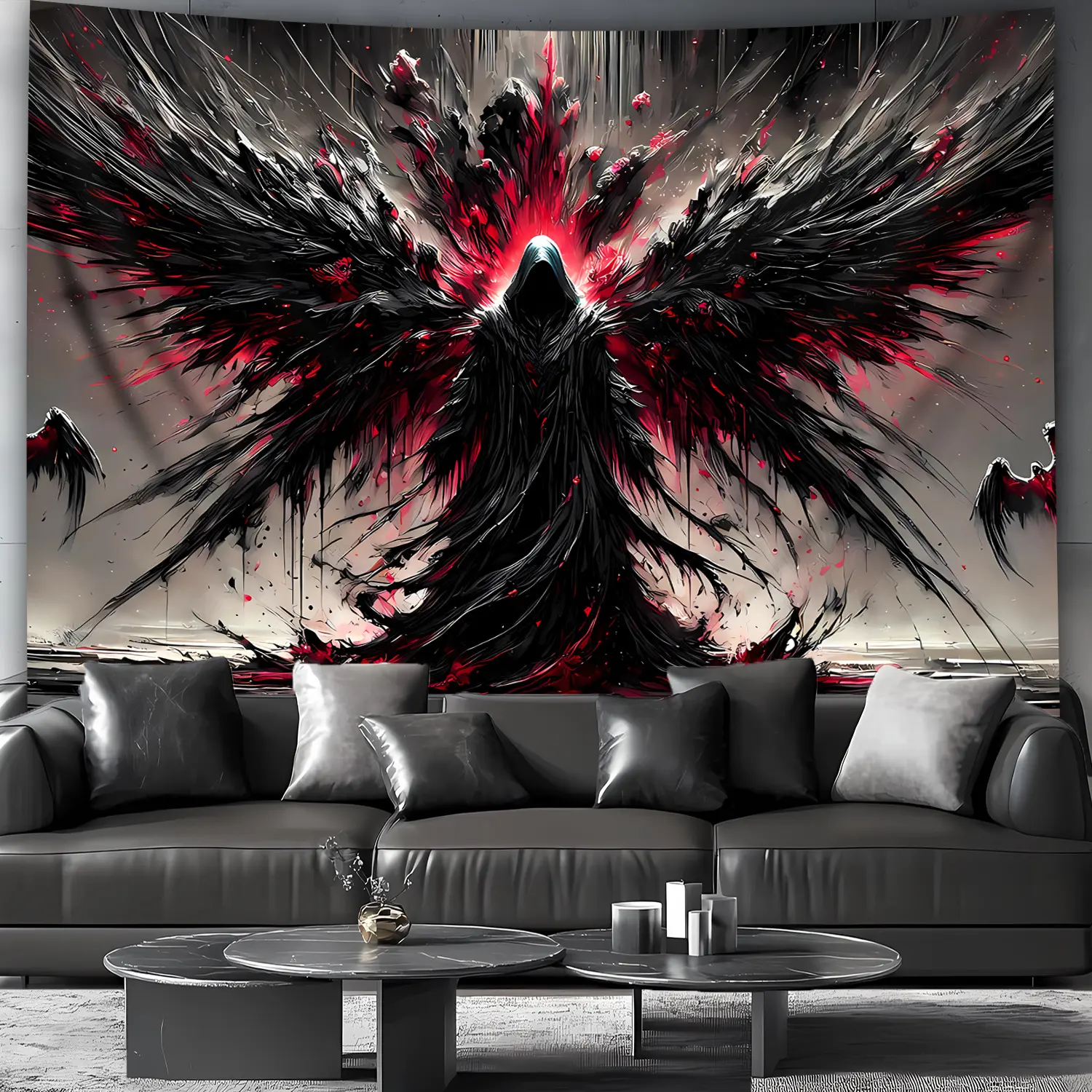 1pc Ultra Large Fantasy Gothic Tapestry - Black Robe Wings & Red Accents HD Digital Print, Premium Polyester Wall Hanging with Wrinkle-Resistant Fabric & Hanging Clips for Living Room, Bedroom, Party Decor, Gothic Decor