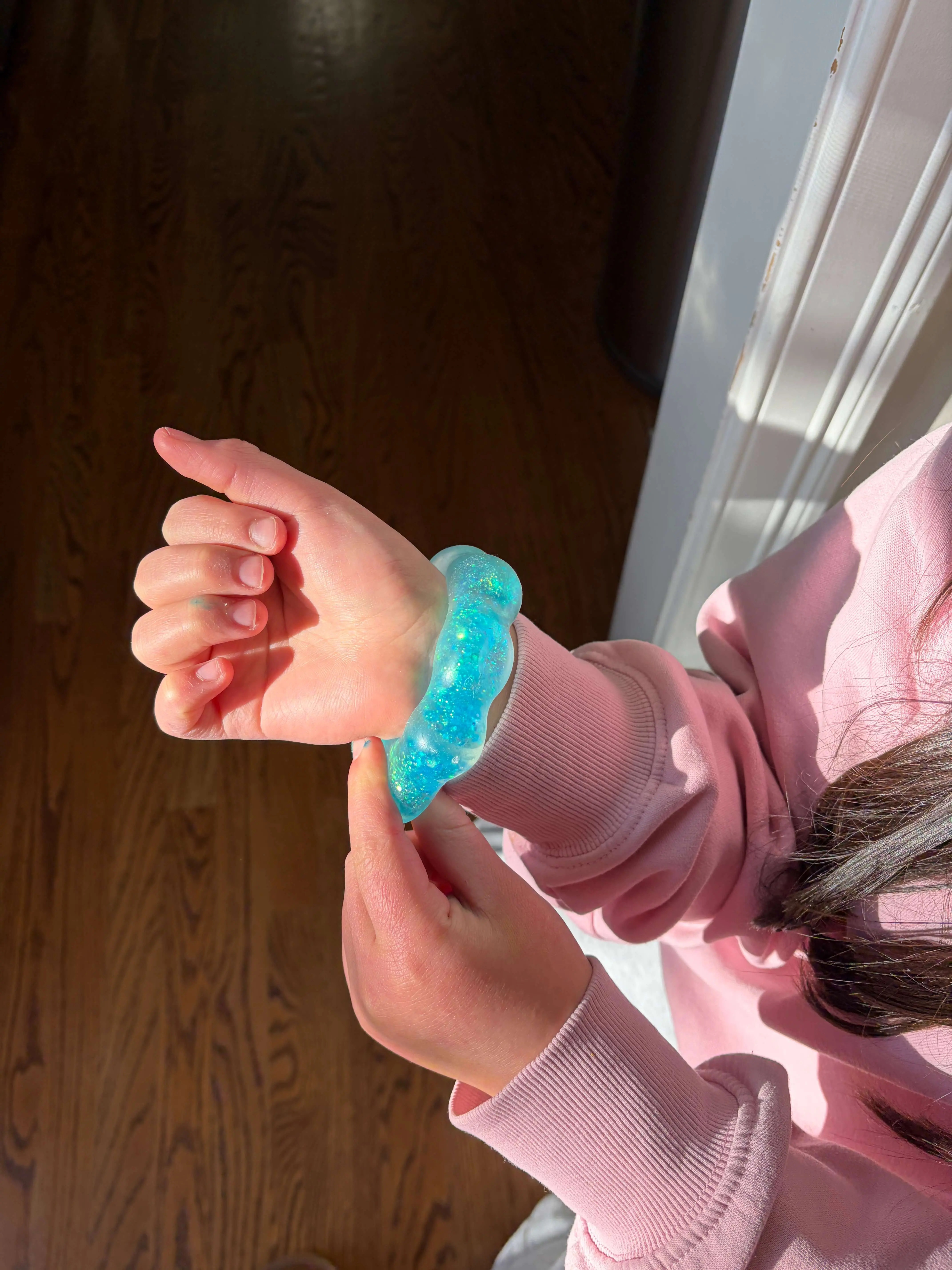 Feelzies™ Squishy Loop is a soft, wearable sensory bracelet designed to help kids release energy, refocus, and feel more in control — anytime, anywhere.